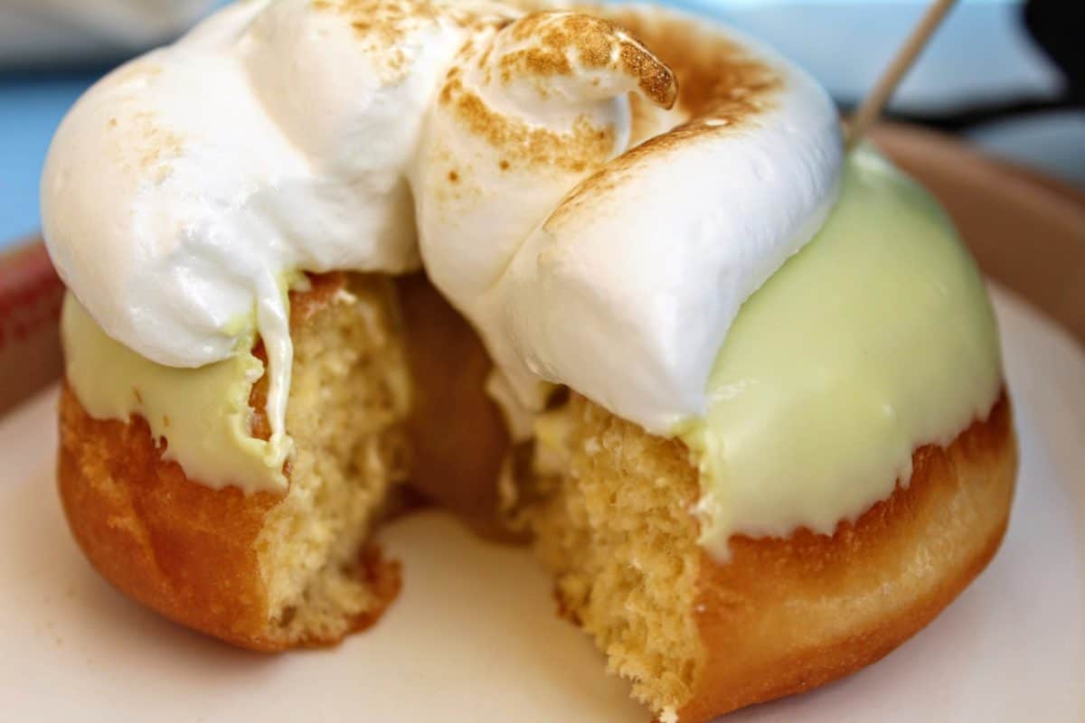 The donut is very sweet, but overall the taste is great. The pineapple filling is a great surprise, but personally I could do without the toasted marshmallow topping (much like the marshmallow dipping sauce with the Pineapple Churro).