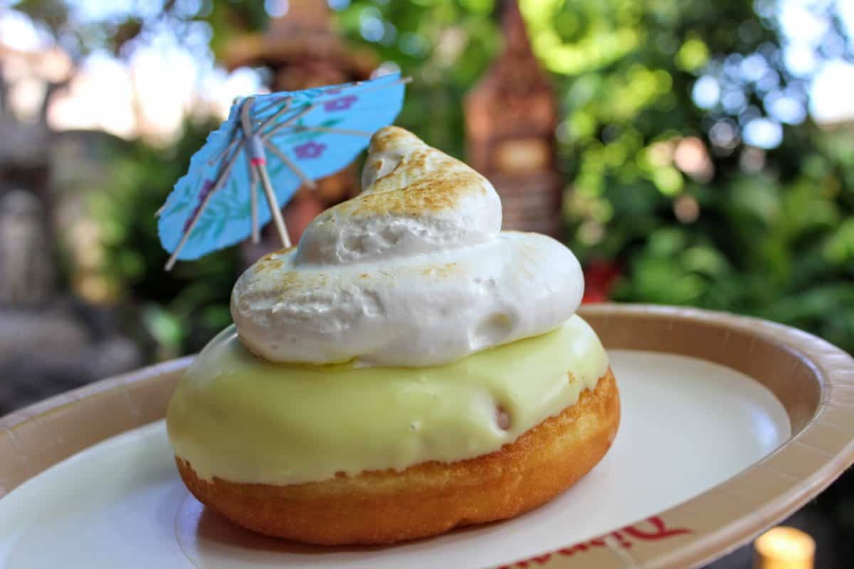 This picture perfect pineapple creation is available at the Donut & Coffee cart just adjacent to Sleeping Beauty’s Castle on Main Street, U.S.A. The donut is a typical glazed donut, filled with a pineapple jelly filling, and topped with a pineapple-flavored frosting and toasted marshmallow topping.