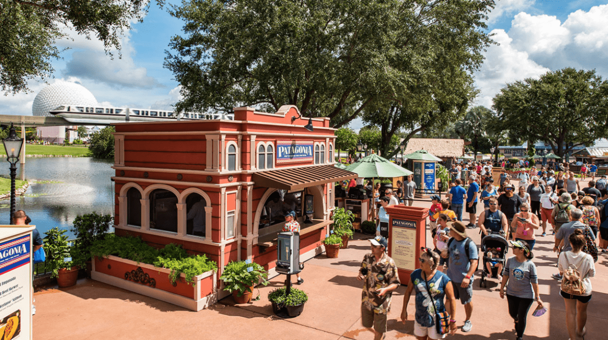 Although it’s fun to see all the new booths set up around the World Showcase, they do take up a lot of space! With so many people around and all the added food stations, it really doesn’t leave much room for dining areas. This isn’t always a problem since snacks are mostly, well, snack size, but if you plan to share or make it more of a meal experience, you’ll want to find a place to sit and preferably out of the heat. One great place to go is the Festival Center. Guests can not only find tables and chairs set up for a more relaxed dining experience, but you’ll also find additional shopping, demonstrations, and food. The mimosa booth in particular is getting a lot of hype already.