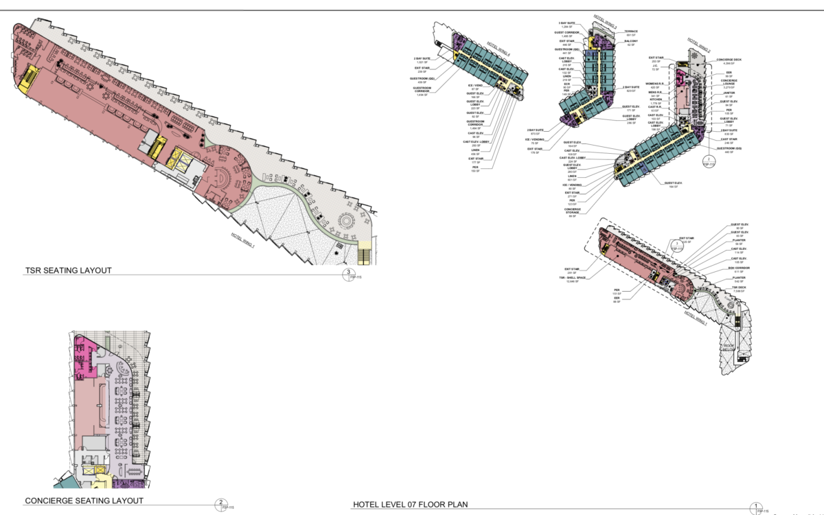 Other anecdotes from the documents include a pedestrian bridge that will connect the hotel lobby to the current monorail platform. The lobby of the hotel will be located on the third floor, which is considered the “main floor” of the hotel. The concierge lounge will be located in Wing 2 on the seventh floor as well.