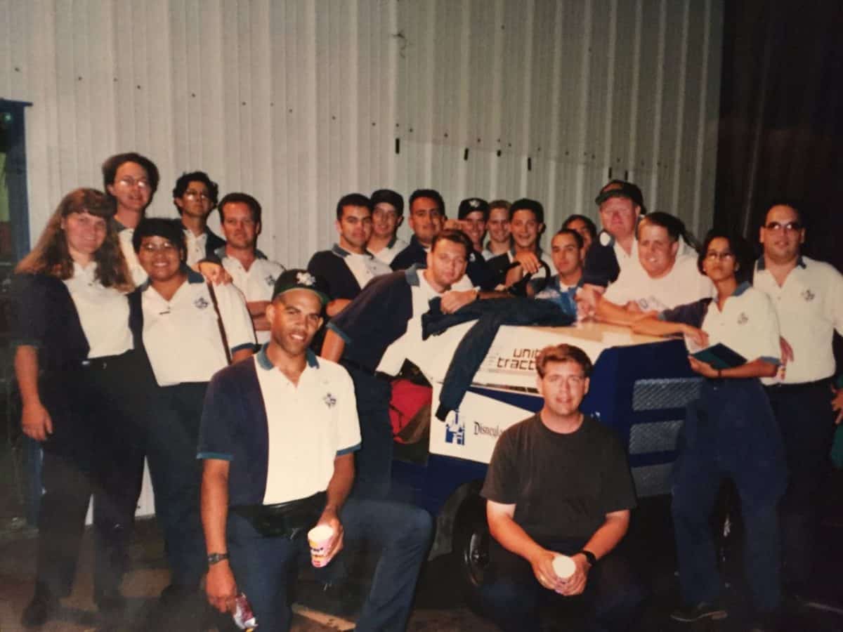 The crew of the Main Street Electrical Parade in 1995, the year Carter became a Disneyland Cast Member.