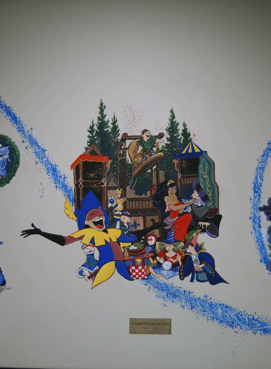 There is a special MAGIC among Cast Members at the Magic Kingdom… whether it be Califorina, or florida, and i suspect tokyo, China, or Euro Disney would hold this as well… To be a part of the MAGIC, is a special feeling. Cast Members often do things to enhance this magic, and never seek to be compensated for these extra efforts… The spirit shines out and is so other taken for granted. The artistic talents displayed in these paintings served as inspiration for many Cast Members, and they should live on forever… Several times in the writings within this story, it was pointed out that he was NOT paid for creating this Magic…I am certain that it was simply an HONOR to create these paintings, as in telling the story it is certainly the right thing to explain how these efforts were done unpaid to stand as example of the love which was presented… Reading between the lines I gather that looking back the artist may feel that Disney should have paid him for this work. He mentions that through the recognition he was able to achieve other positions, and that is wonderful! Yet, when something is done for a place that does not make much money, it is never considered to be paid for giving that extra something… the flip side is when something so extra is done for free for a place which is making huge profits, and you do not get paid anything for the extra services you supply, then I suspect there is a bit of a feeling that what you did was not appreciated enough. Most people like to do what ever they can to make something better, and i assume that most people would also like to NOT feel used for their efforts. It is a hard thing to balance sometimes… We do things because we want to, and to add our spark of inspiration to build upon the Magic… Yet I think it is only fair to be rewarded in some way beyond the joy that it brings to others, since others are capitalizing on everyone’s efforts in selling that Magic… hat’s off to this artist as he has the spirit and the dreams…. I just wish that he was rewarded more for his efforts.