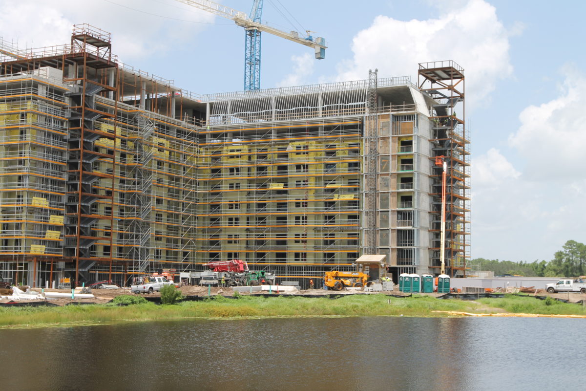 It’s been a while since we’ve checked out Disney’s Riviera Resort construction. This resort is being constructed right near the current entrance to Disney’s Caribbean Beach Resort. The Disney Vacation Club will call this resort home once completed sometime in the 2019 year. We stopped by to check out construction late last week.