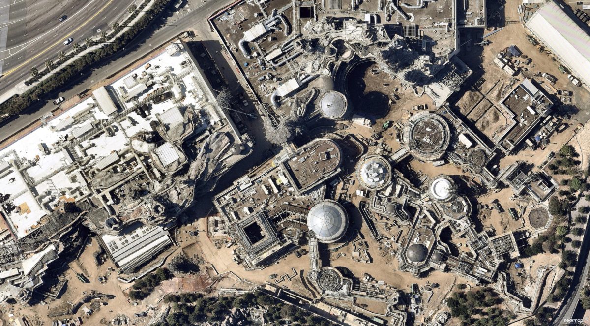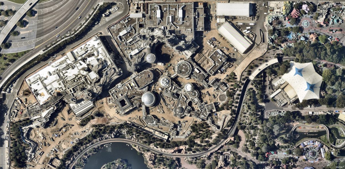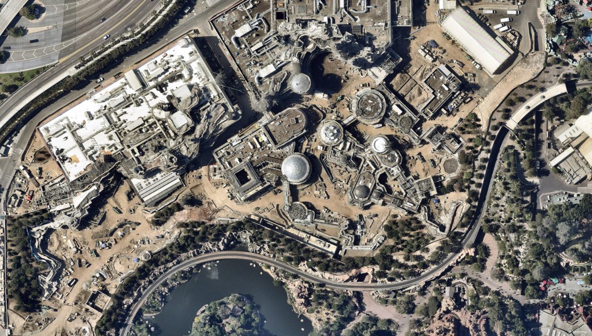 Thanks to our friends at NearMap we have recent imagery from Star Wars: Galaxy’s Edge at Disneyland Park. This is the same land and layout of the same land being built on the east coast at Disney’s Hollywood Studios. These were taken at the beginning of July, 2018.