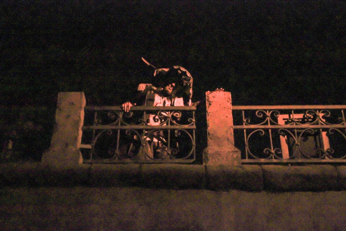 Annnnnd there he is, above the bridge near Bill (with the cats)
