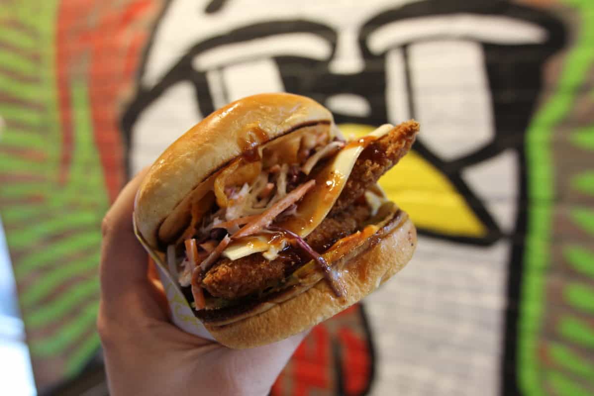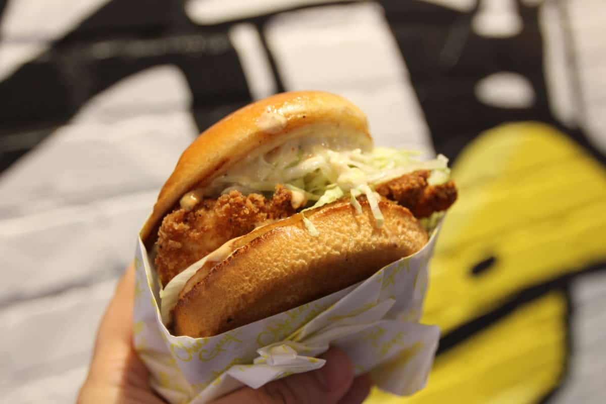 Our favorite of the sandwiches by far, probably because it had the right amount of toppings. The sauce is spectacular and works well with the perfect amount of slaw. If you’re going to bother getting a sandwich we recommend this one.