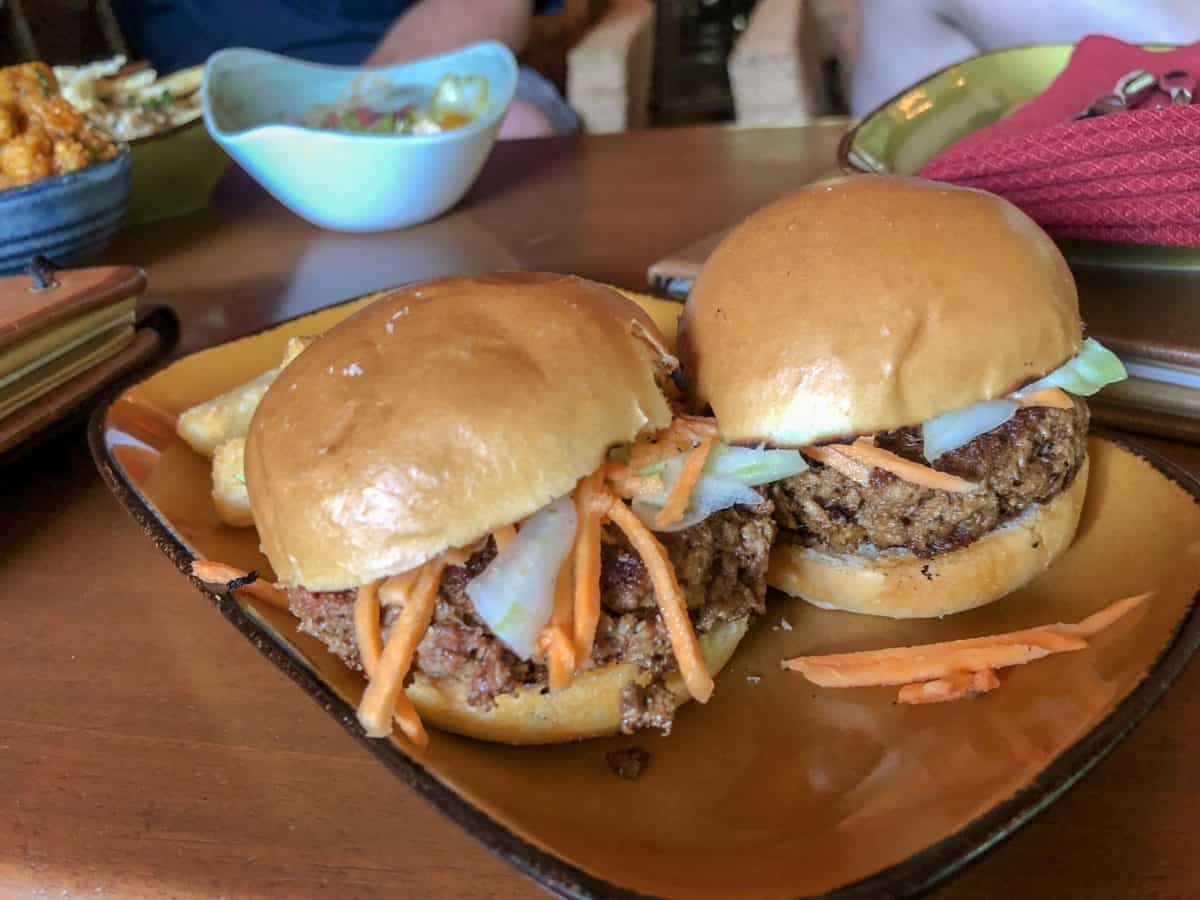 These may or may not be available during your visit. We saw them for a short-lived time at Nomad Lounge and across the park for the 20th anniversary. If you do happen to see the Impossible Burger around, it’s a full vegan burger (literally the burger patty) that “bleeds”. Yeah, and it tastes like a real meat burger too. It’s quite different and good, very unique. The yucca fries are particularly enjoyable as well.