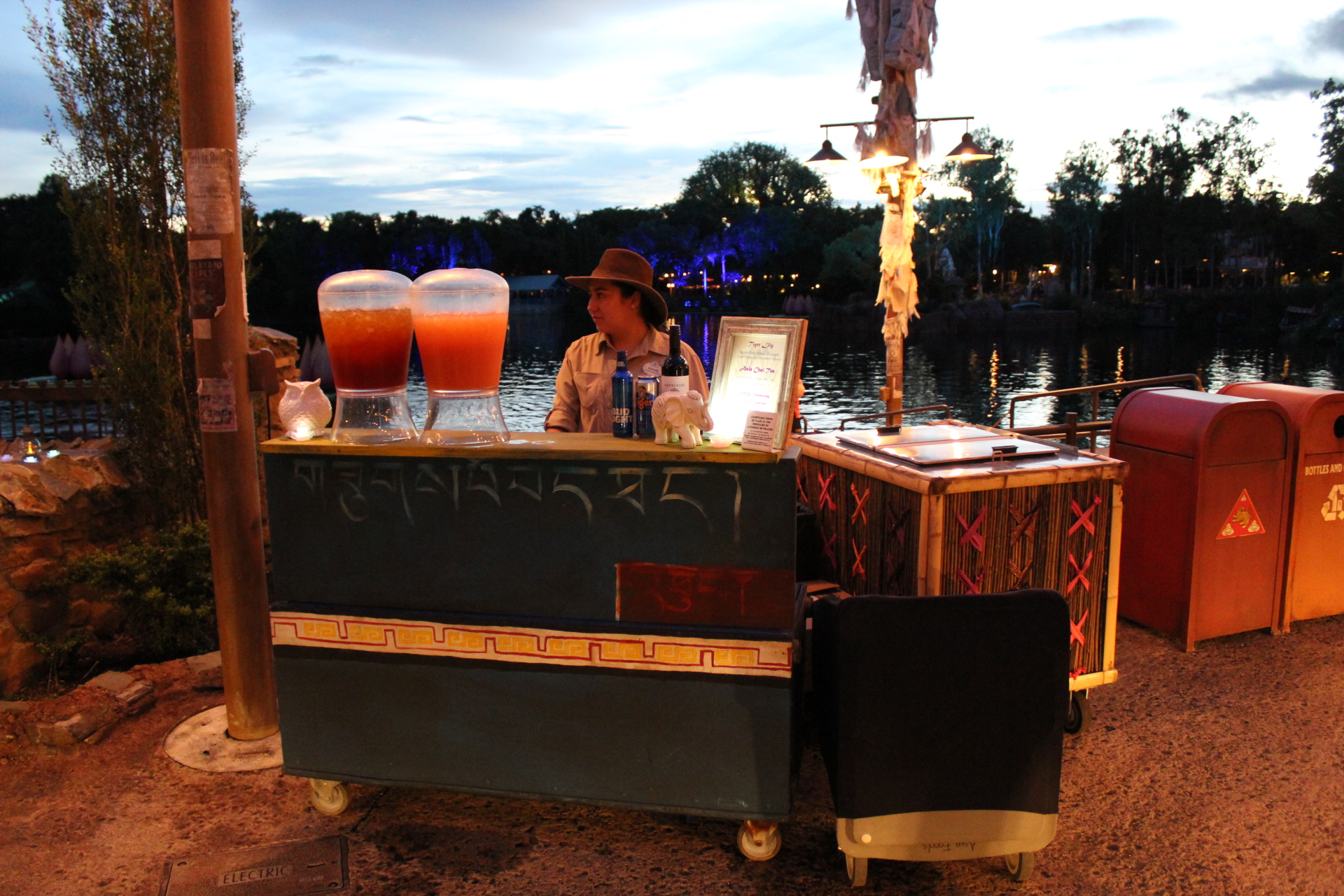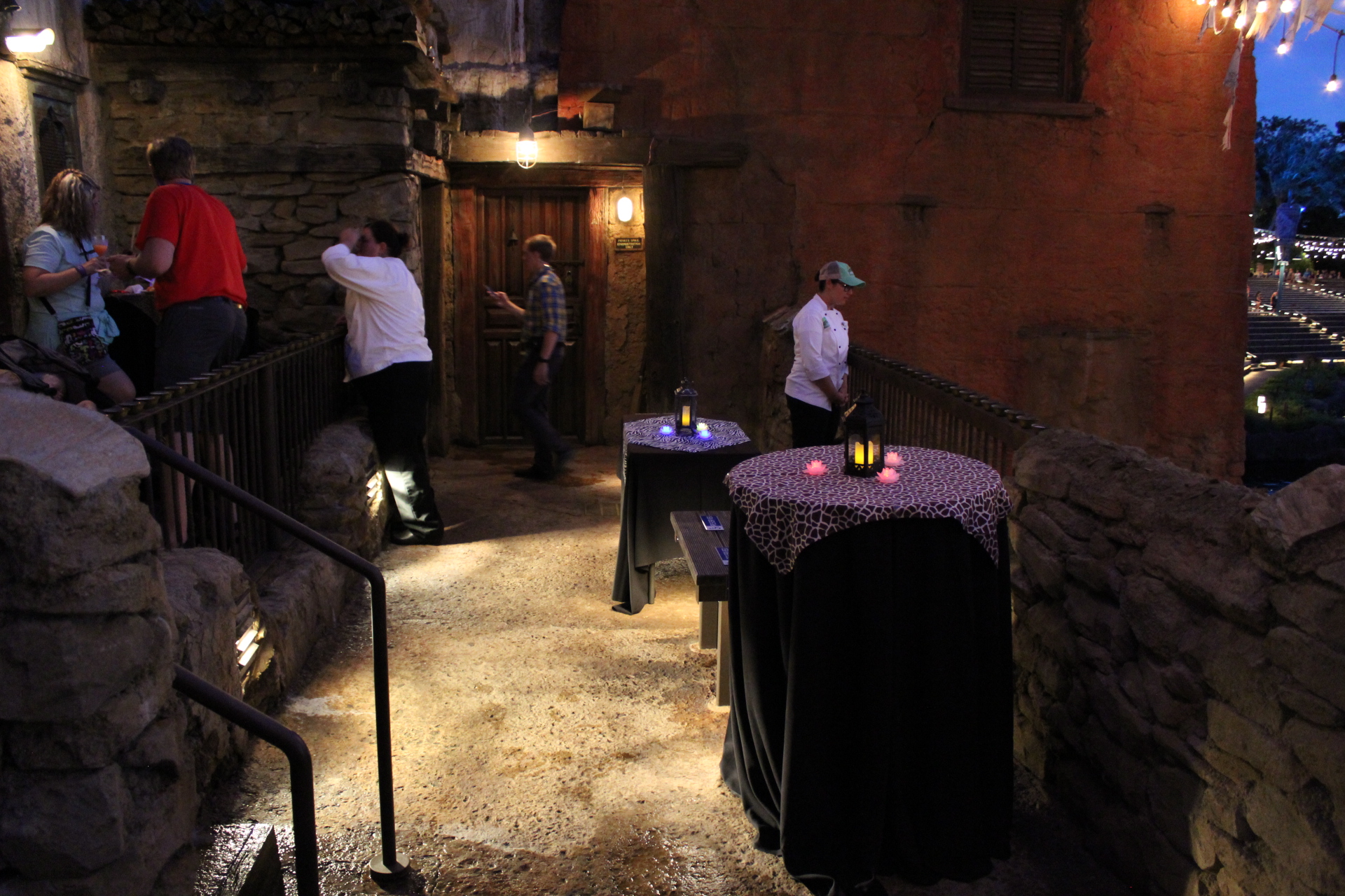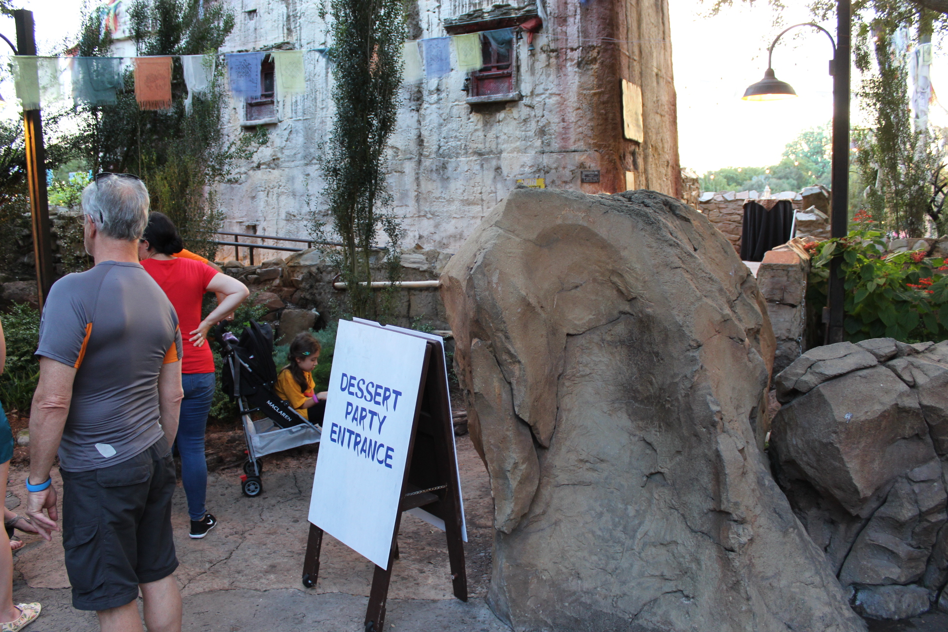 The entrance to the dessert party is next door to the control booth for the show, just across from Expedition Everest and next to the bridge between Asia and Dinoland U.S.A.. If you’re coming from Asia, just keep going past the FastPass entrance to the show until you get to the inlet just before the bridge to the right. If you’re coming from Dinoland, just stick to your left once you get over the bridge.