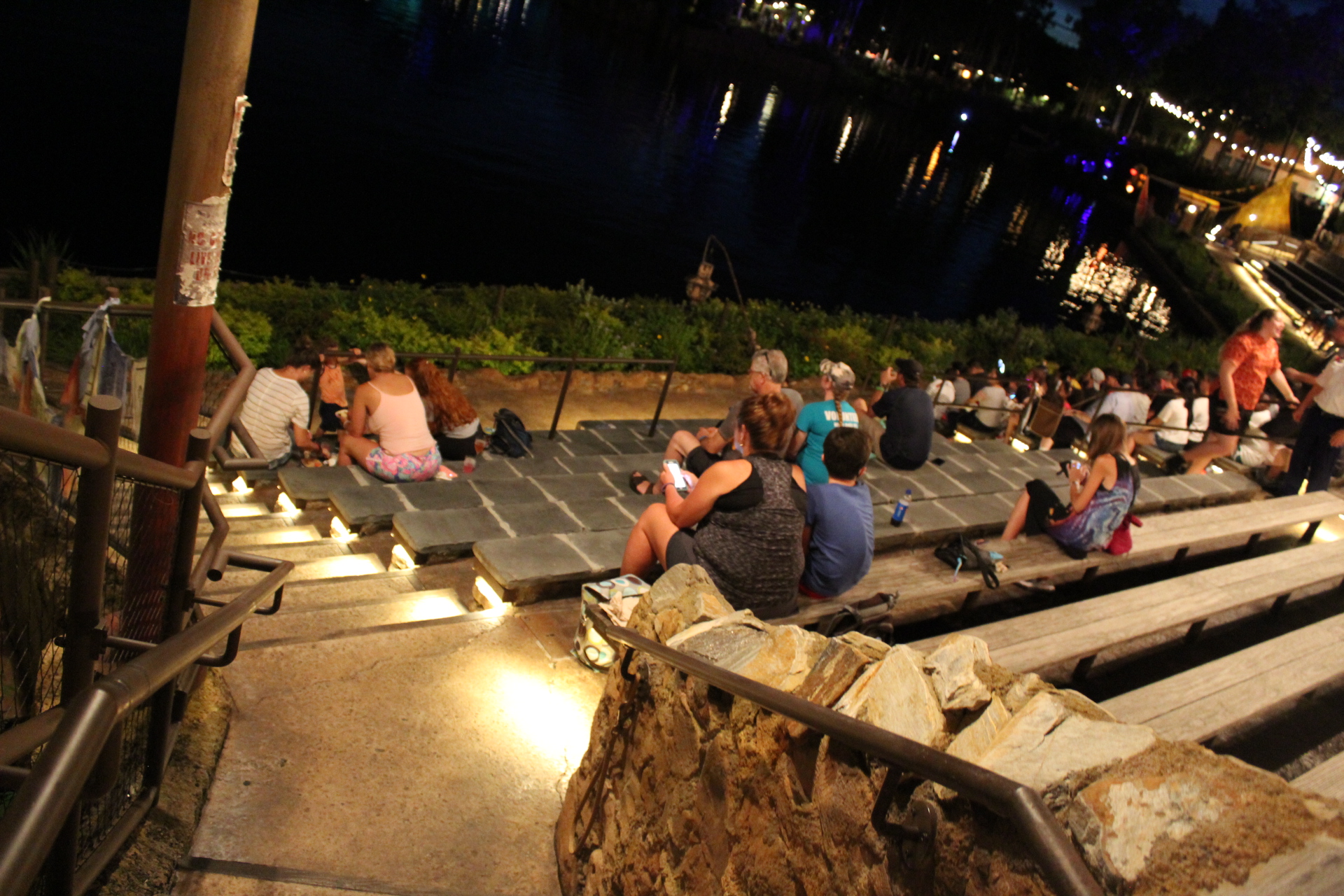 We chose to stand on the highest level by the control booth for a really special view of the show as we have seen it many times. If it is your first time, then I suggest going to the lower viewing area with seats, but do note this isn’t much different from showing up very early with a FastPass+ reservation. Here’s what we saw at the tallest vantage point:
