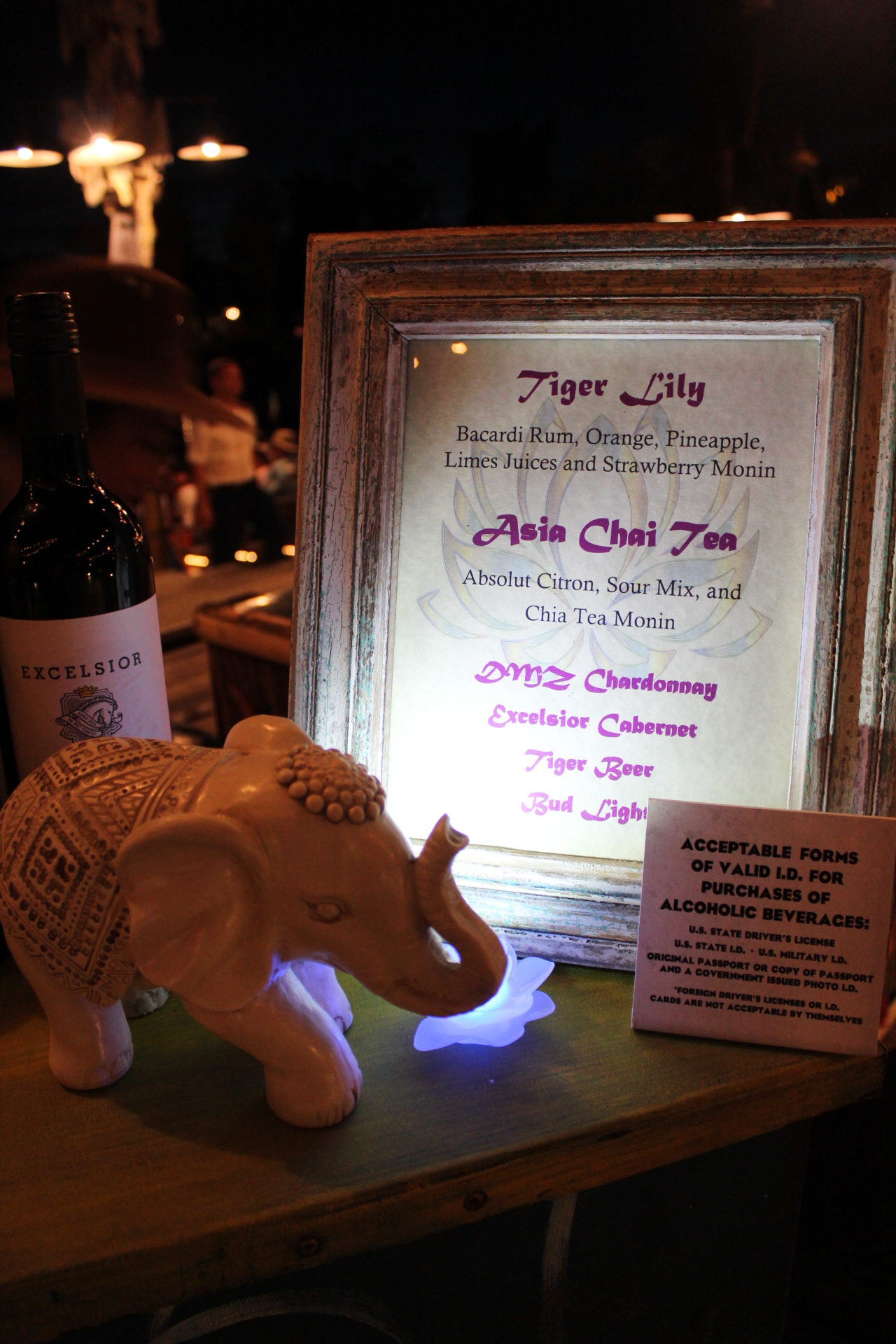 Here you’ll find ice water, iced tea, and the specialty non-alcoholic beverages, the Purple Lotus and ubiquitous Jungle Juice.