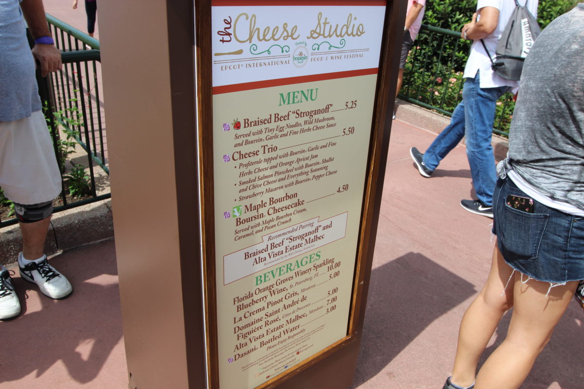 Menu for The Cheese Studio at the Epcot International Food & Wine Festival