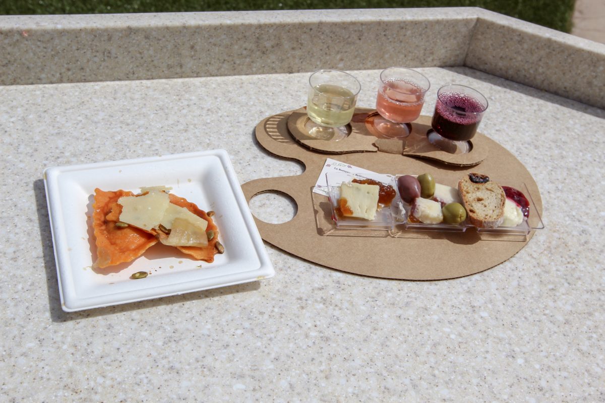 This is a festival favorite pairing two of the greatest things on earth: Cheese and Wine. More importantly wine. The cheese is masterfully paired with the wines, making each bite and sip compliment each other. There’s also great value to be found ordering the cheese and wine together because you get this really great tray to hold everything on. While nothing here is particularly exciting, your Instagram friends will love seeing your literal palette of booze and dairy.