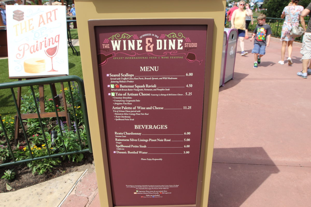 Menu for the Wine & Dine Studio at the Epcot International Food & Wine Festival
