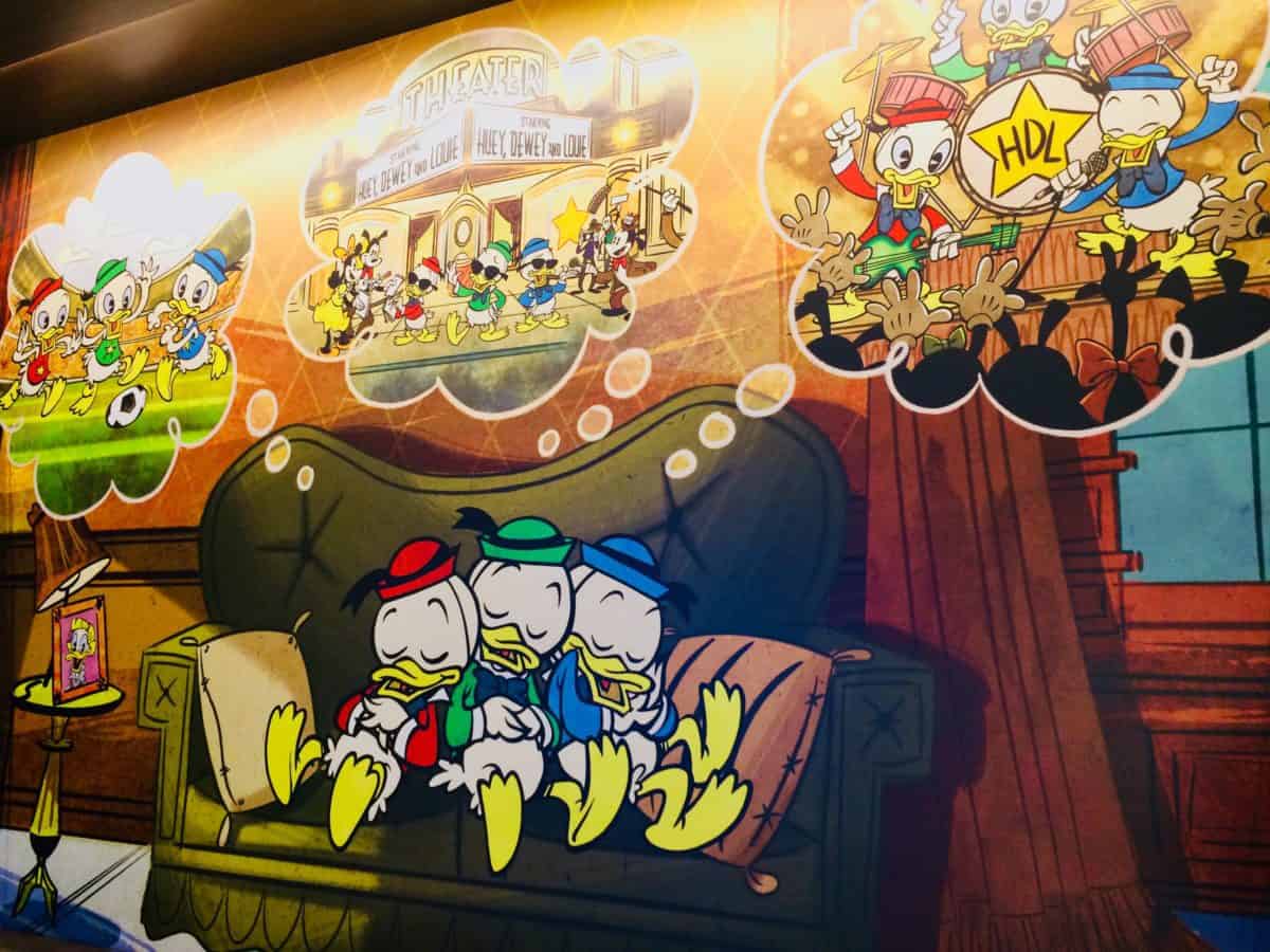 The dream bubbles of Huey, Dewie, and Louie are of music, sports, and movies, so in that way they relate to the All Star resorts.