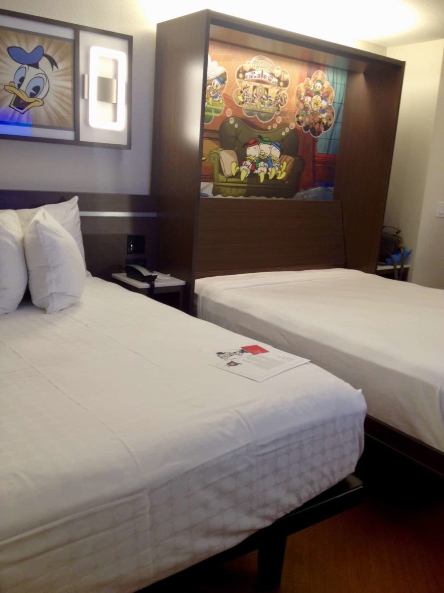 So, the decorative elements of the room take inspiration from the new Mickey Mouse animated shorts and have nothing to do with the building (Toy Story) or resort (Movies)? It is a Mickey and friends room in a Pixar building. Would it have been so difficult to have Buzz, Jessie, and Woody on the headboard?