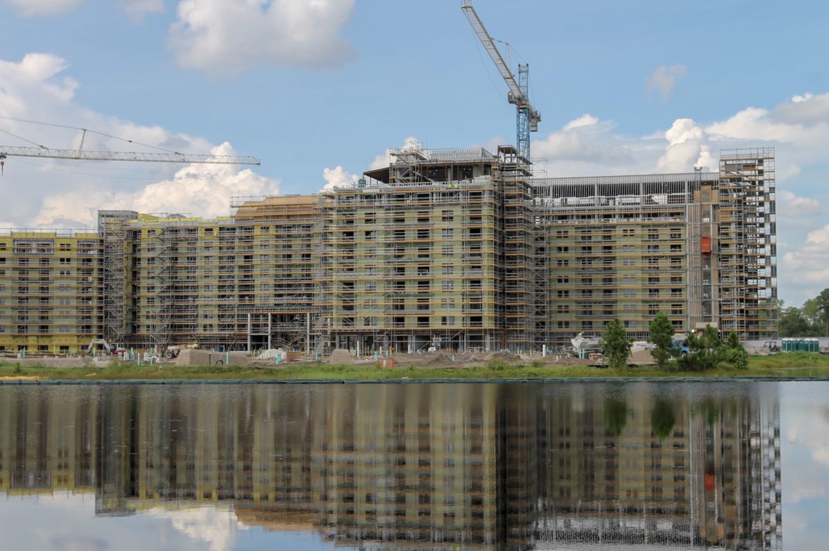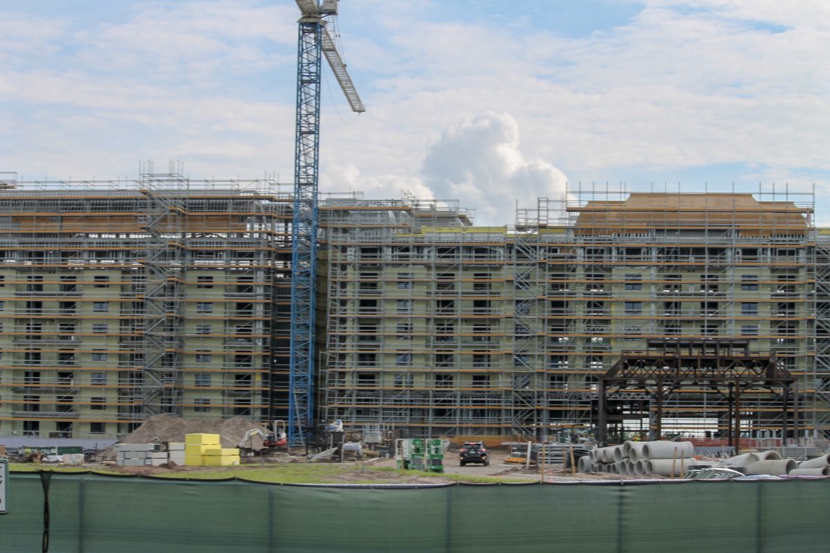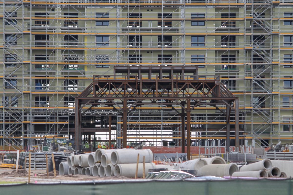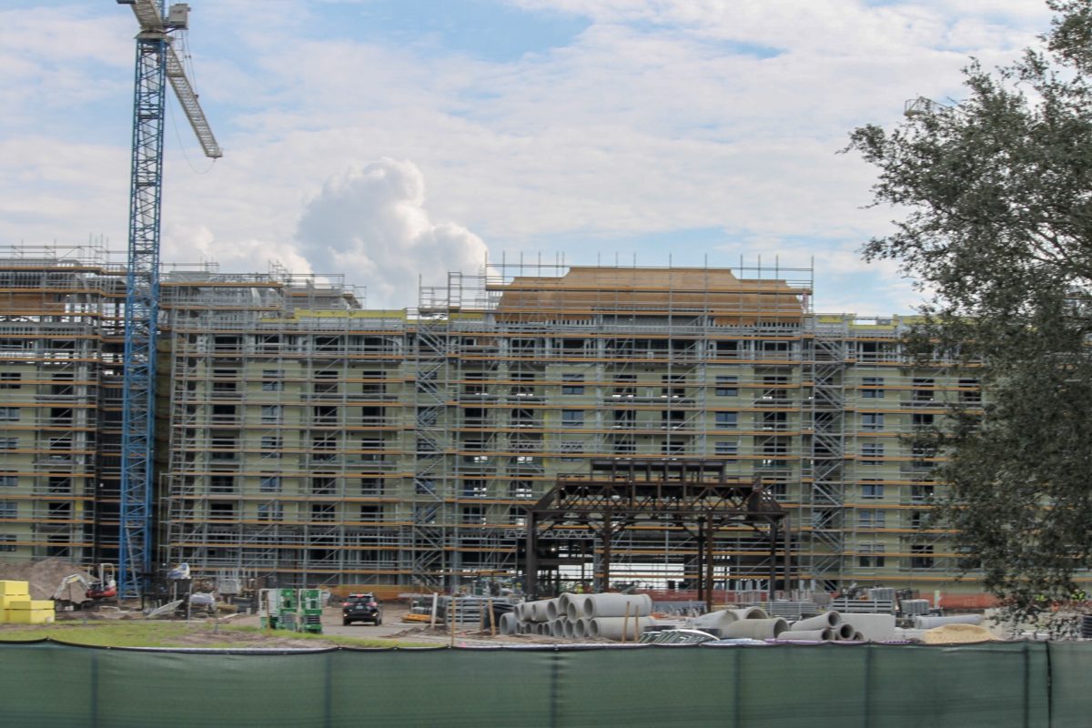 The Riviera Resort construction is picking-up pace recently. We brought you an update back in August about the resort starting to enclose the interior, but today we have view from the front of the resort to show you. And the back, because we found a new vantage point due to Caribbean Beach construction wrapping-up. Take a look!