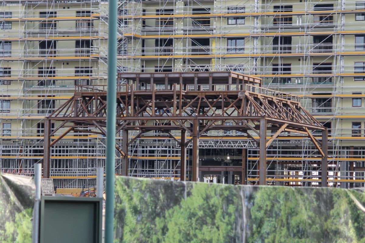 The main entrance pavilion has been constructed and it’s VERY tall. A few stories, and built up on a huge pile of dirt. The approach to the resort will certainly be wonderful.