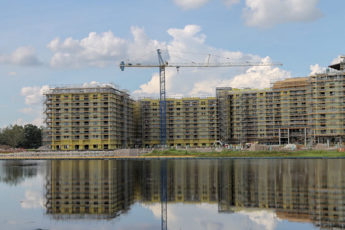 We got these images from in front of Sebastian’s Bistro at Caribbean Beach. A new pathway through the construction walls opened giving us some great views of this new waterfront property.