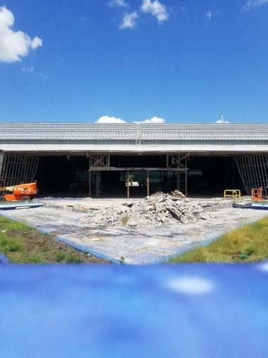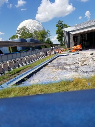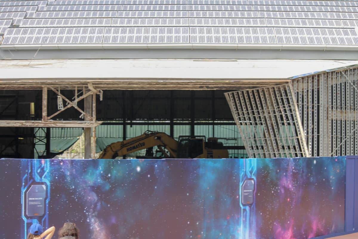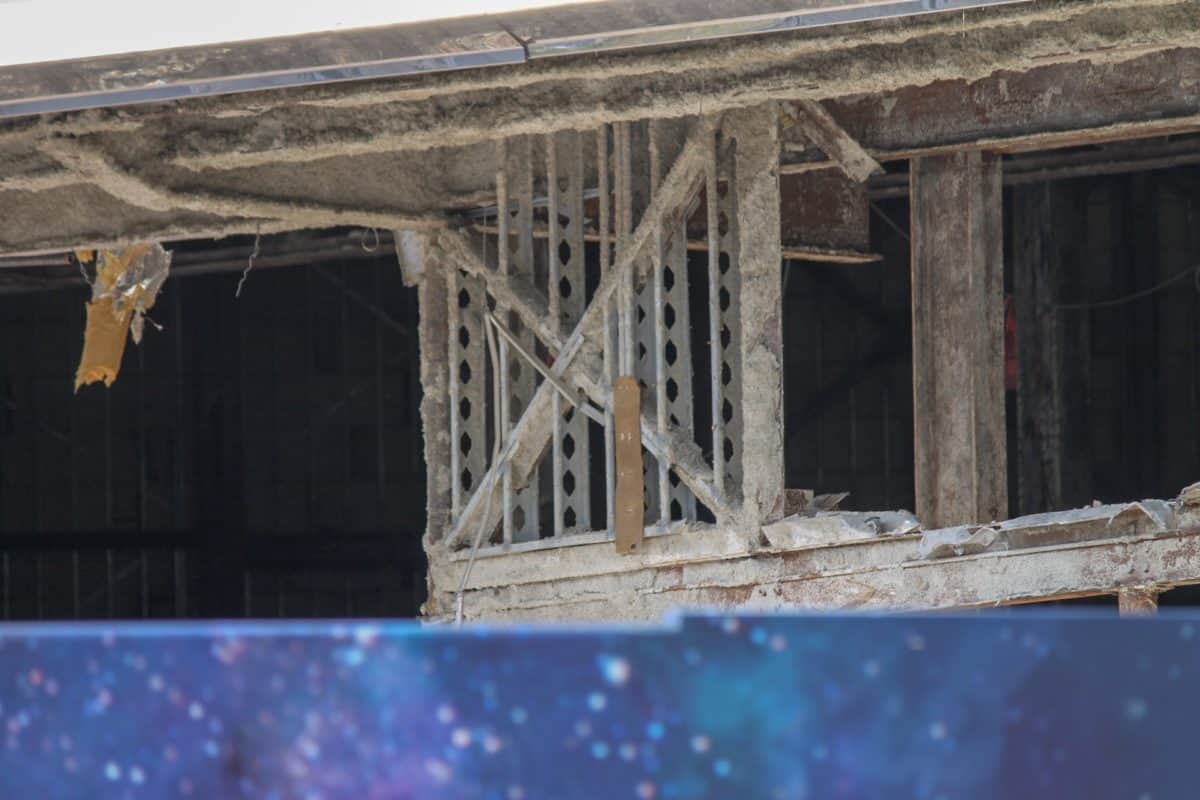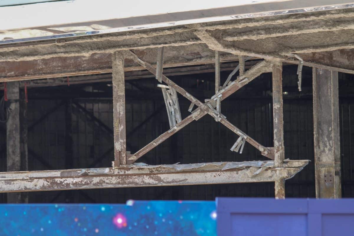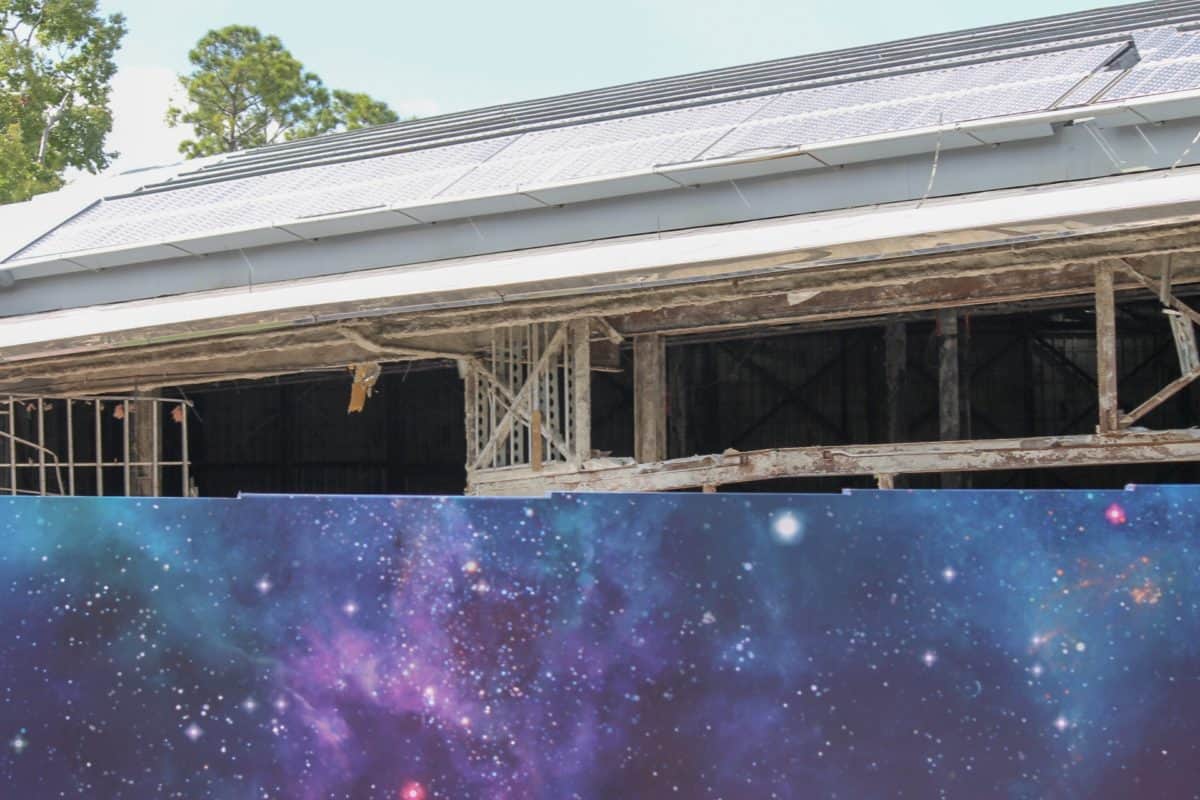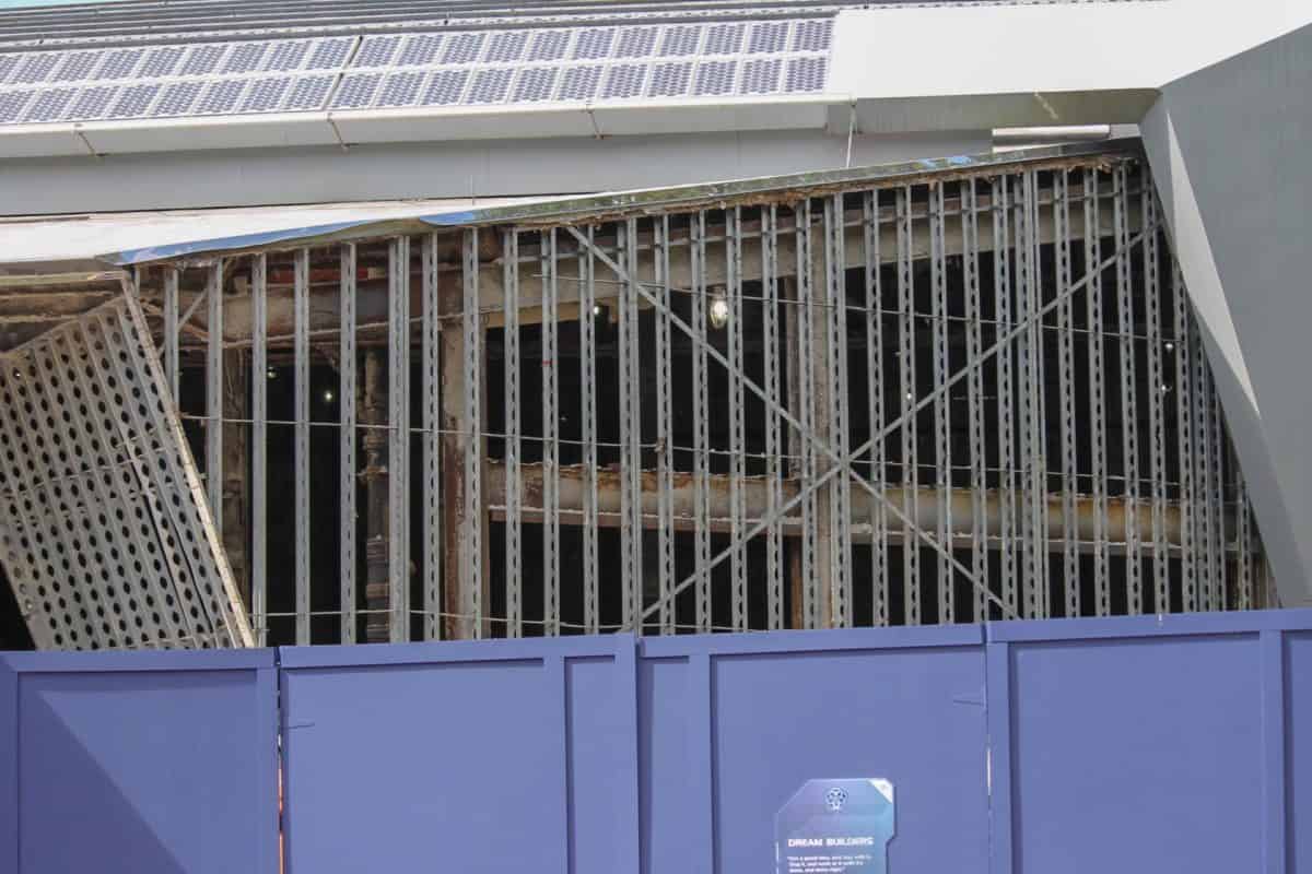 We showed you a few days ago that the Universe of Energy building at Epcot was ripped open showing what is now essentially an empty warehouse. Later the next day we stopped by to get more images of the destruction on the building.
