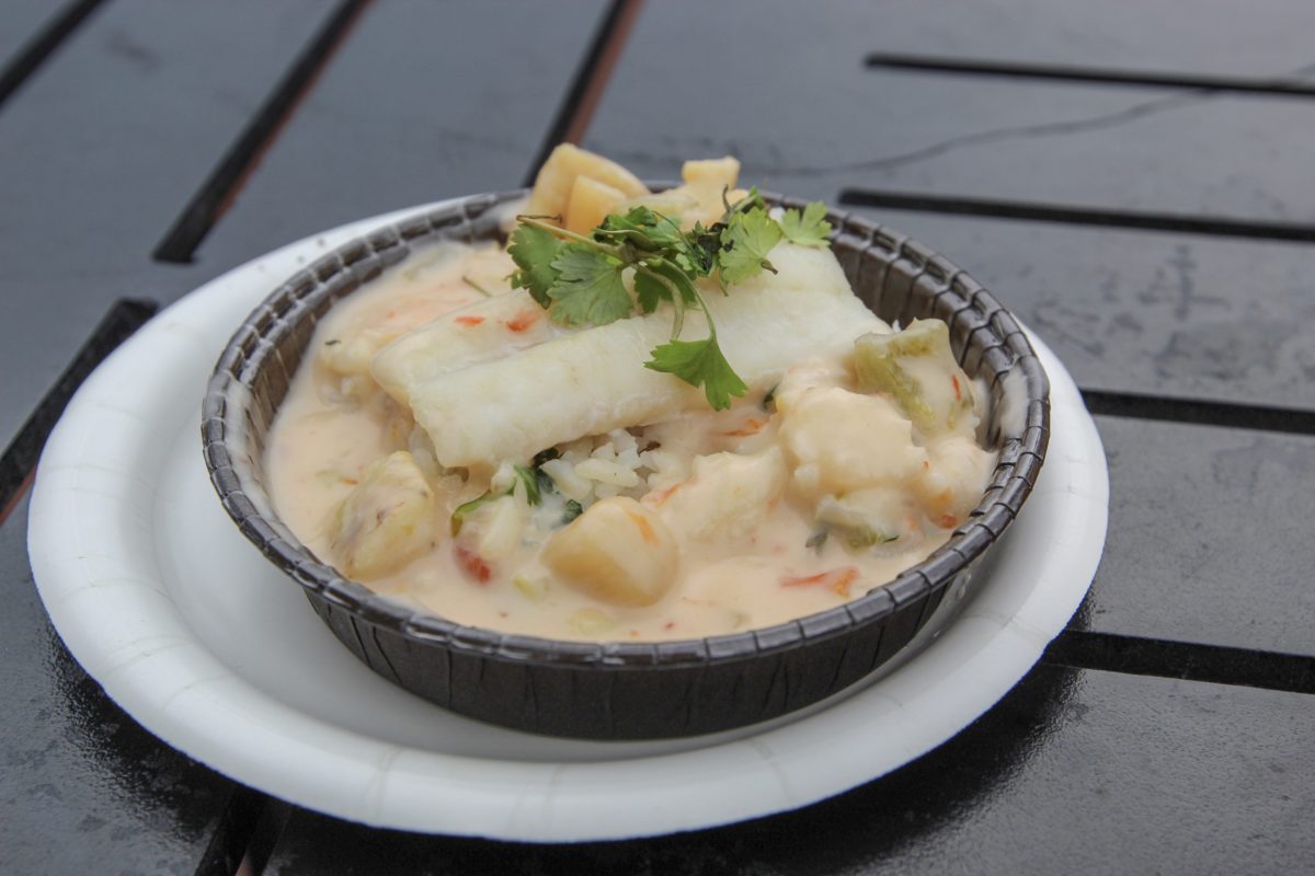 *NEW* Moqueca: Brazilian Seafood Stew featuring Scallops, Shrimp and White Fish with Coconut-Lime Sauce and Steamed Rice – $5.25