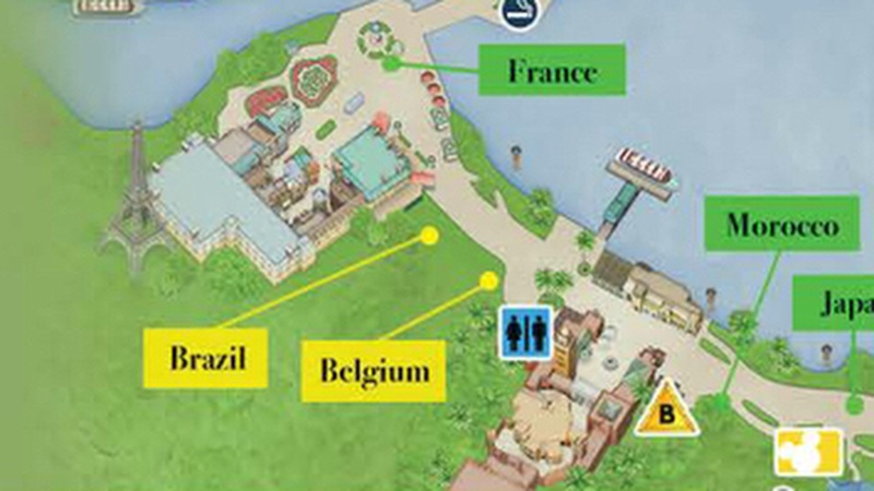 The Brazil Marketplace Booth is located on World Showcase Promenade between the Morocco and France pavilions.