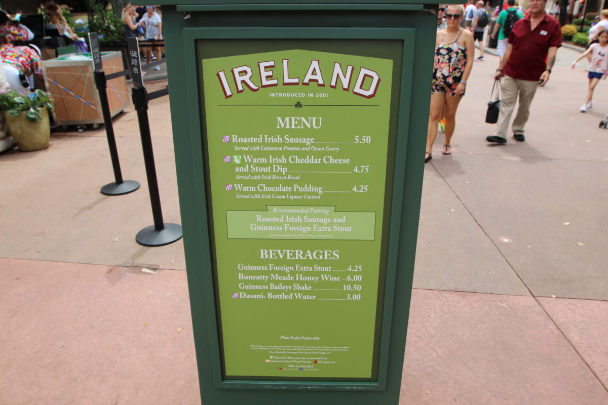Menu for the Ireland Marketplace at the Epcot International Food & Wine Festival