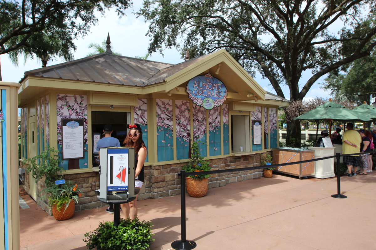 The Almond Orchard is located across from the Port of Entry shop just as you enter World Showcase from the central main walkway.