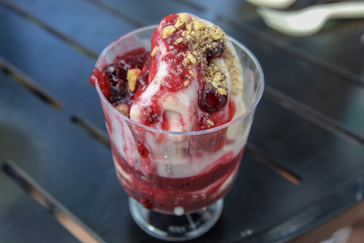 Last year’s version was topped with Crunchy Chocolate Oats; this year’s version has Chocolate Almond Streusel. It’s s a pretty delicious sundae filled with fresh berries and crunchy oats. It’s a little bit of a fruit overload and very tart, but the overall banana flavor of the soft-serve wins in the end. This is a really good dessert, probably one of the best at the festival (if you don’t hate almond milk with a passion perhaps).