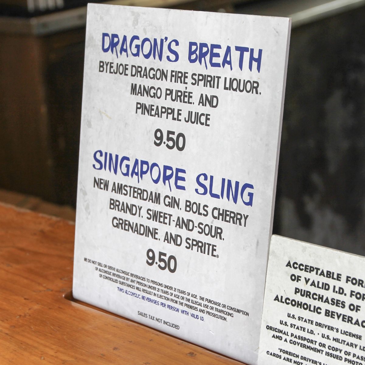 Singapore Sling – New Amsterdam Gin, Bols Cherry Brandy, Sweet-and-Sour, Grenadine, and Sprite – $9.50