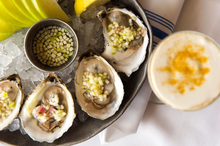 - Lucky Dux Oysters– half shell by the piece with green apple Champagne mignonette sauce