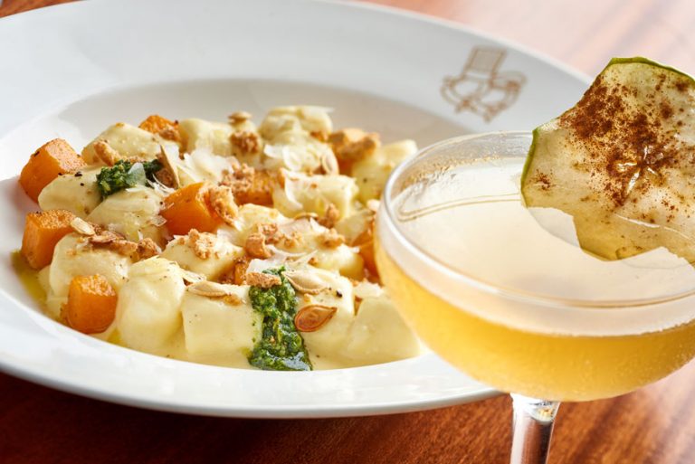 - Fabulous Fall Butternut Squash Gnocchi– handmade ricotta gnocchi, roasted butternut squash, parmesan cream sauce, and pumpkin seed pesto