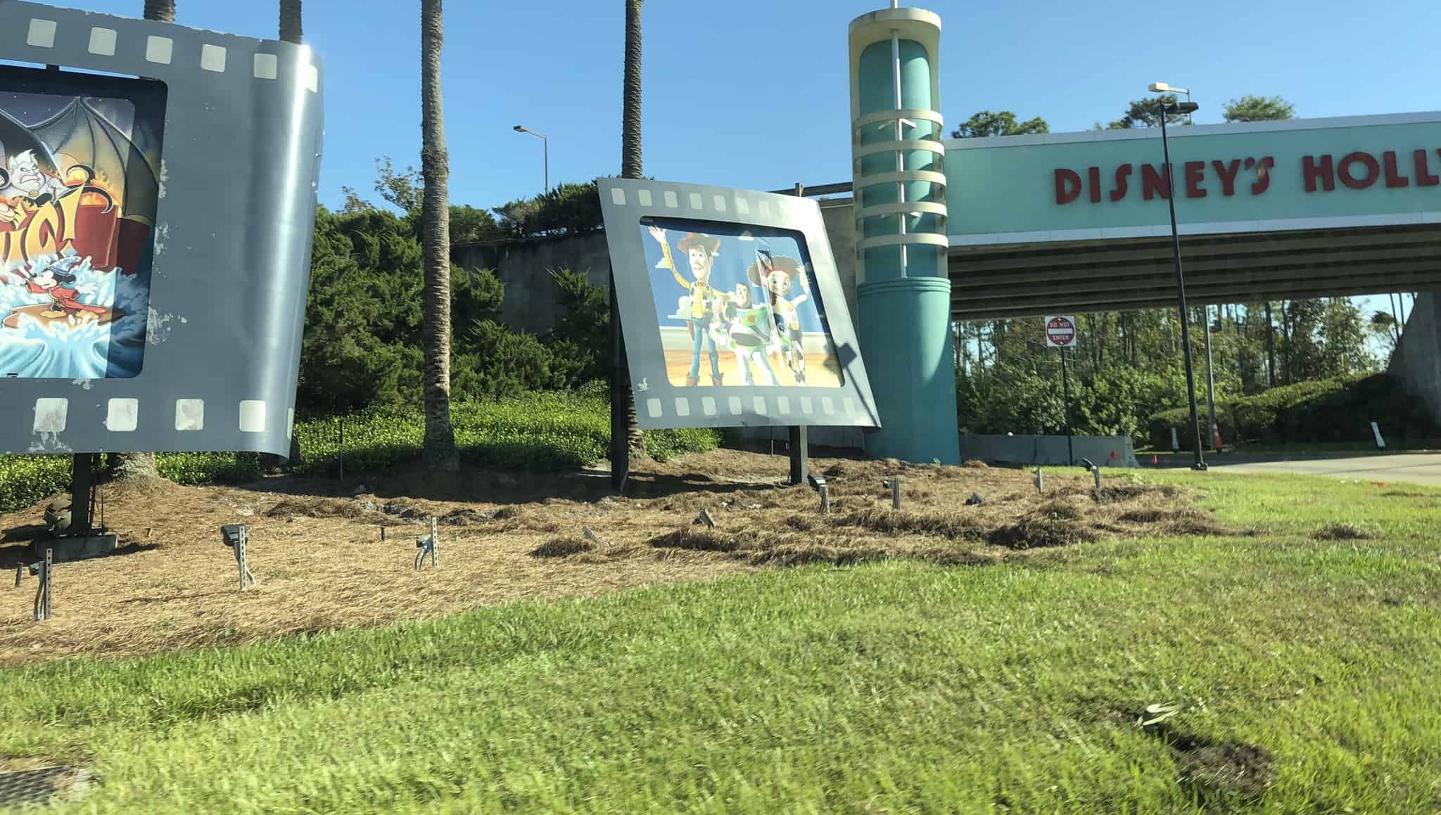Since the early 1990’s, guests entering Disney’s Hollywood Studios from World Drive have been greeted by a giant film strip with previews of the attractions and shows they would be able to see during their visit to the park. In preperation for the opening of the new car entrance on November 8th, the filmstrip entrance is starting to be taken down.