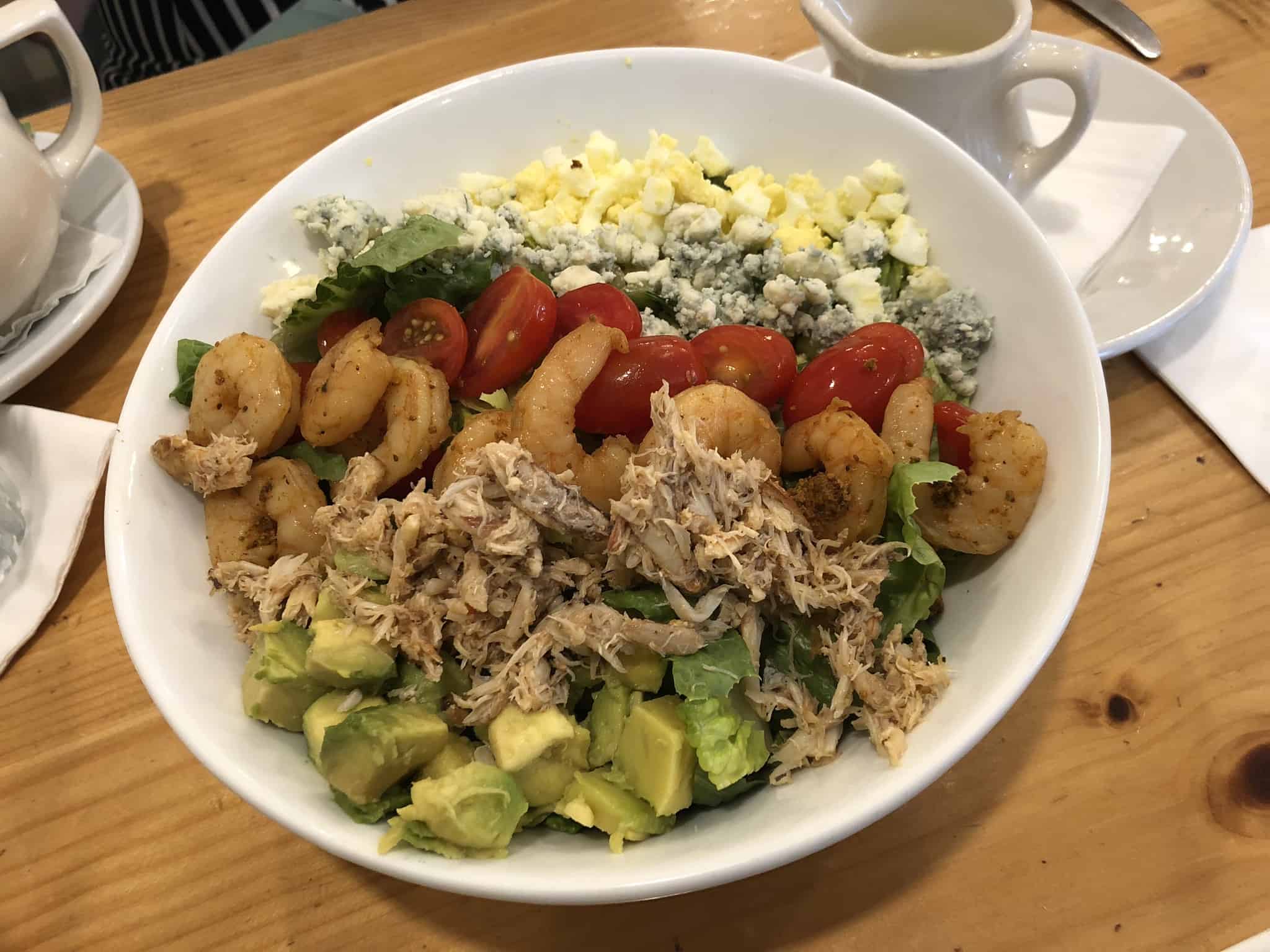 Romaine Lettuce with layers of Chilled Shrimp, Crab Salad, Bacon, Egg, Blue Cheese, Tomato, and Avocado with a Key Lime-Mustard Vinaigrette.