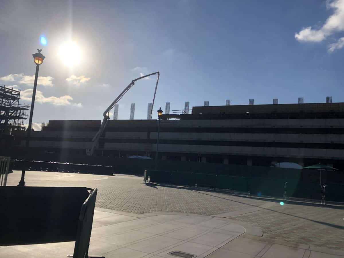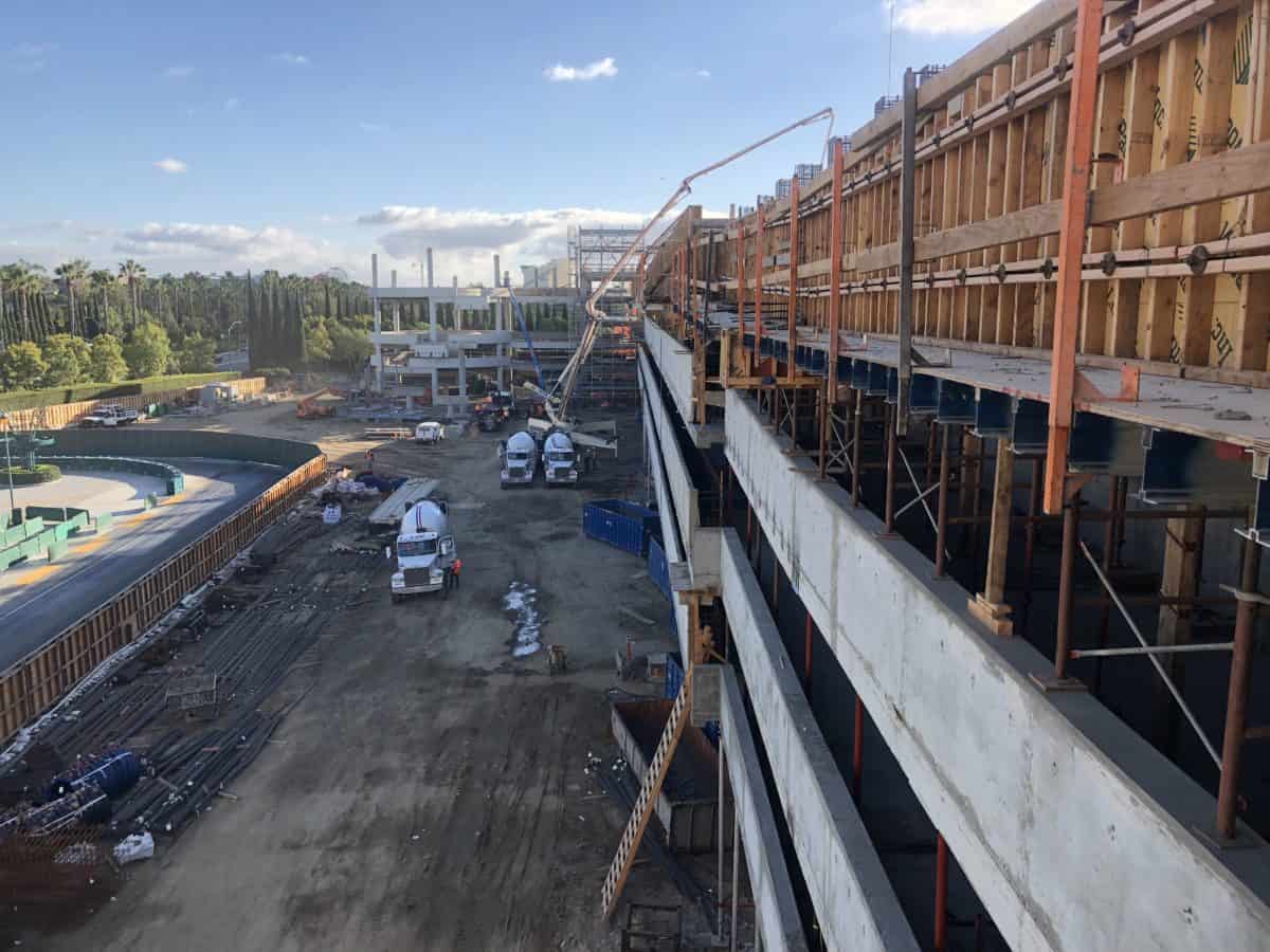 We took a walk around all of Disneyland Resort on Wednesday, November 28. The holiday decor was in full swing and guests were arriving in festive attire. The construction on Mickey & Friends parking structure continues.