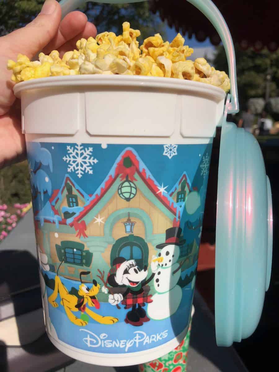 We also grabbed some holiday popcorn buckets. I collect the standard white buckets available for $9 and there were still plenty of the Pluto and Toy Story Alien Holiday buckets available across the parks for $18.