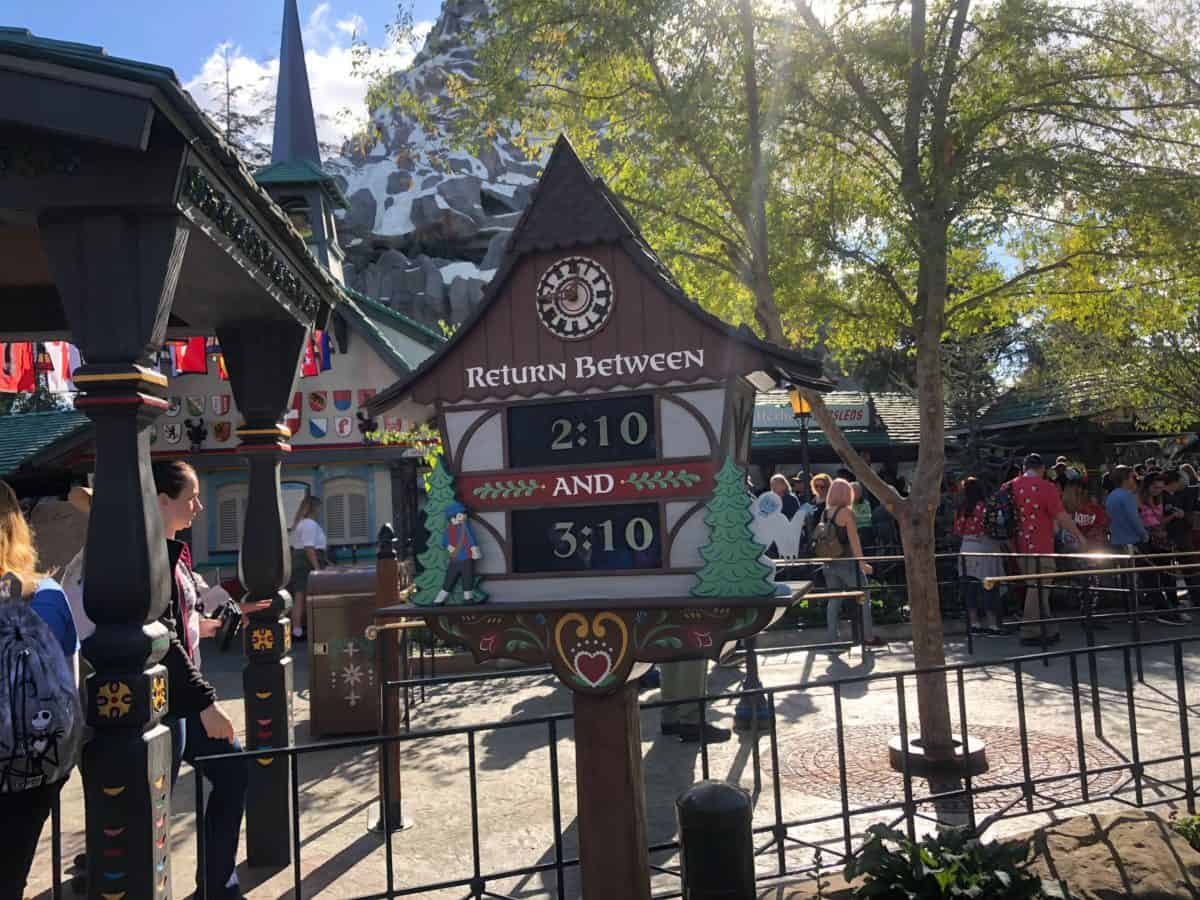 The new Fastpass queue is adorable with a tiny clock.