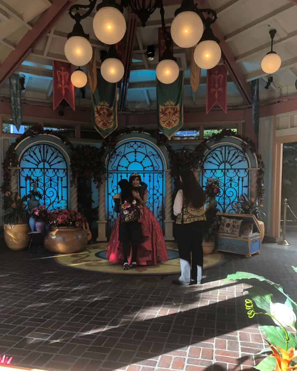 Between shows, Elena of Avalor greets guests at the Viva Navidad area near Goofy’s Flight School.