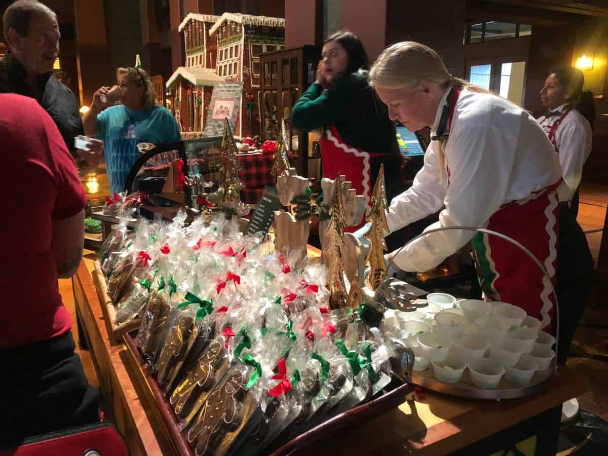 Guests were also enjoying browsing the specialty holiday snack and drinks stand set up near the gingerbread house.