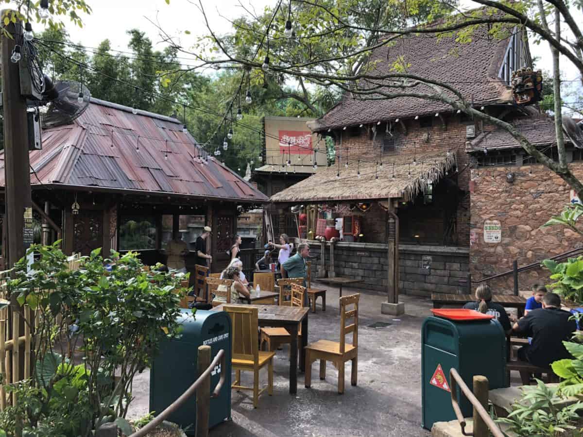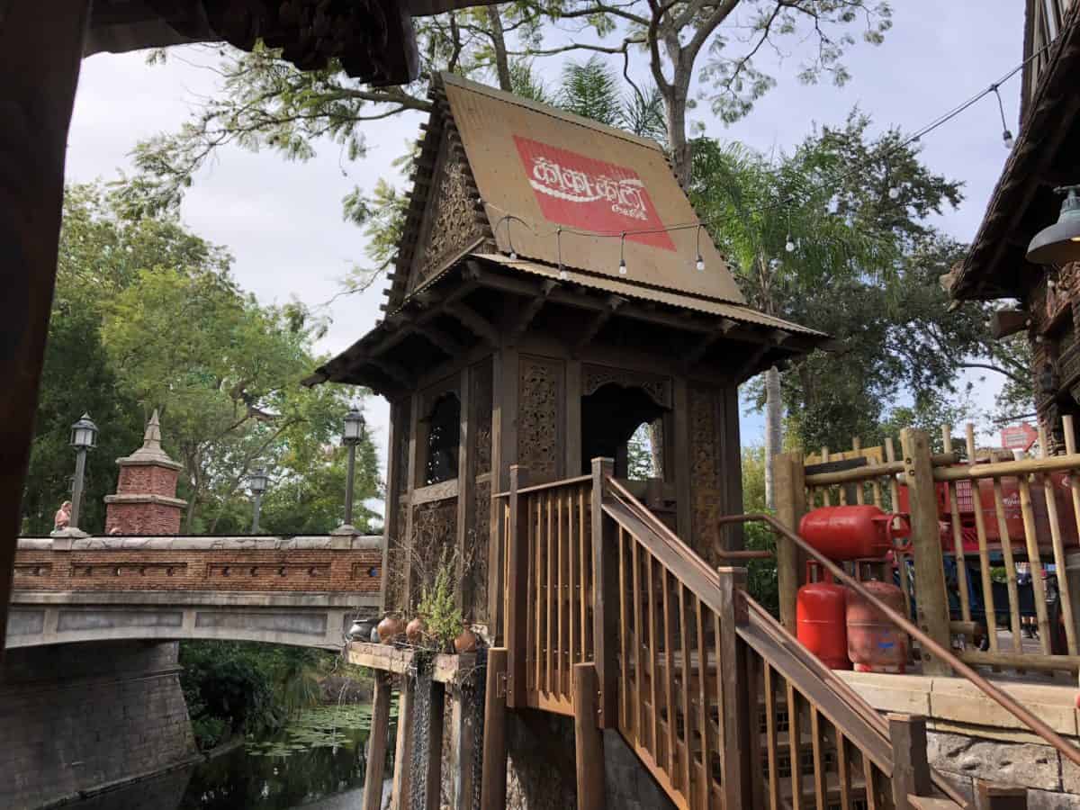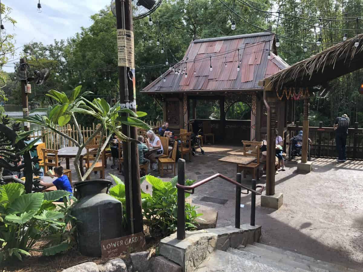 The seating area has a new covered section resting above the river. This is the view as seen from the Asia bridge from Discovery Island.