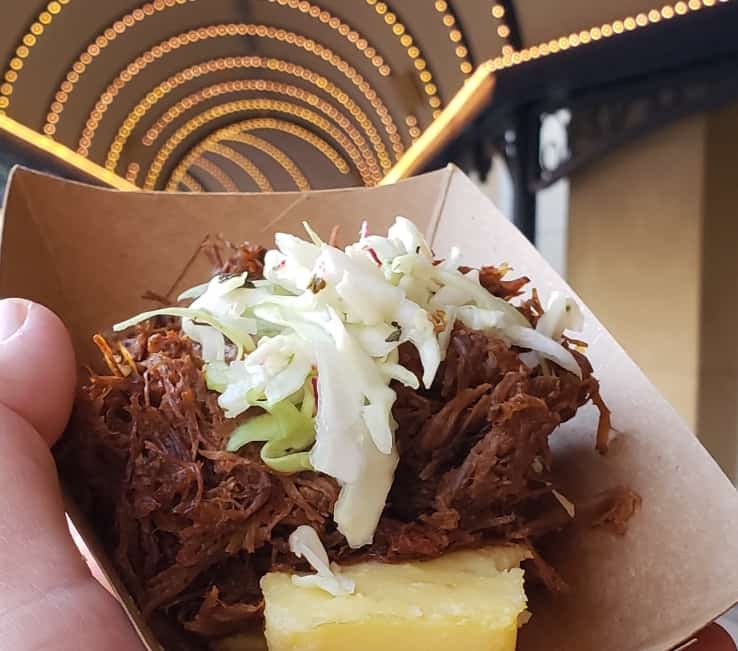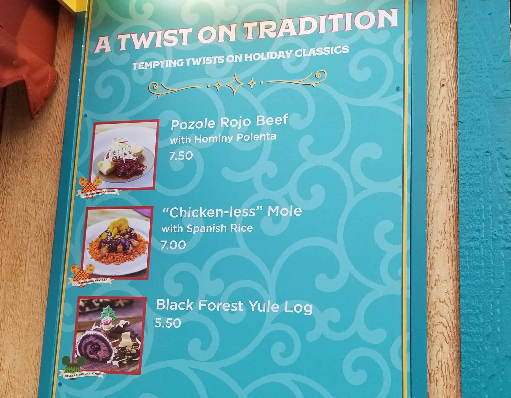 Native Mexicans, southern Californians, Spaniards*, and, let’s face it, those of a worldly culinary bent may wonder just what traditions Disney is twisting at this particular Marketplace kiosk. Yes, Pozole is a widely held holiday staple, and you’ll find Mole in everything from Carnitas to chocolate. Still, not sure our Abuelita would recognize these specific Disney California Adventure Festival of Holidays dishes.