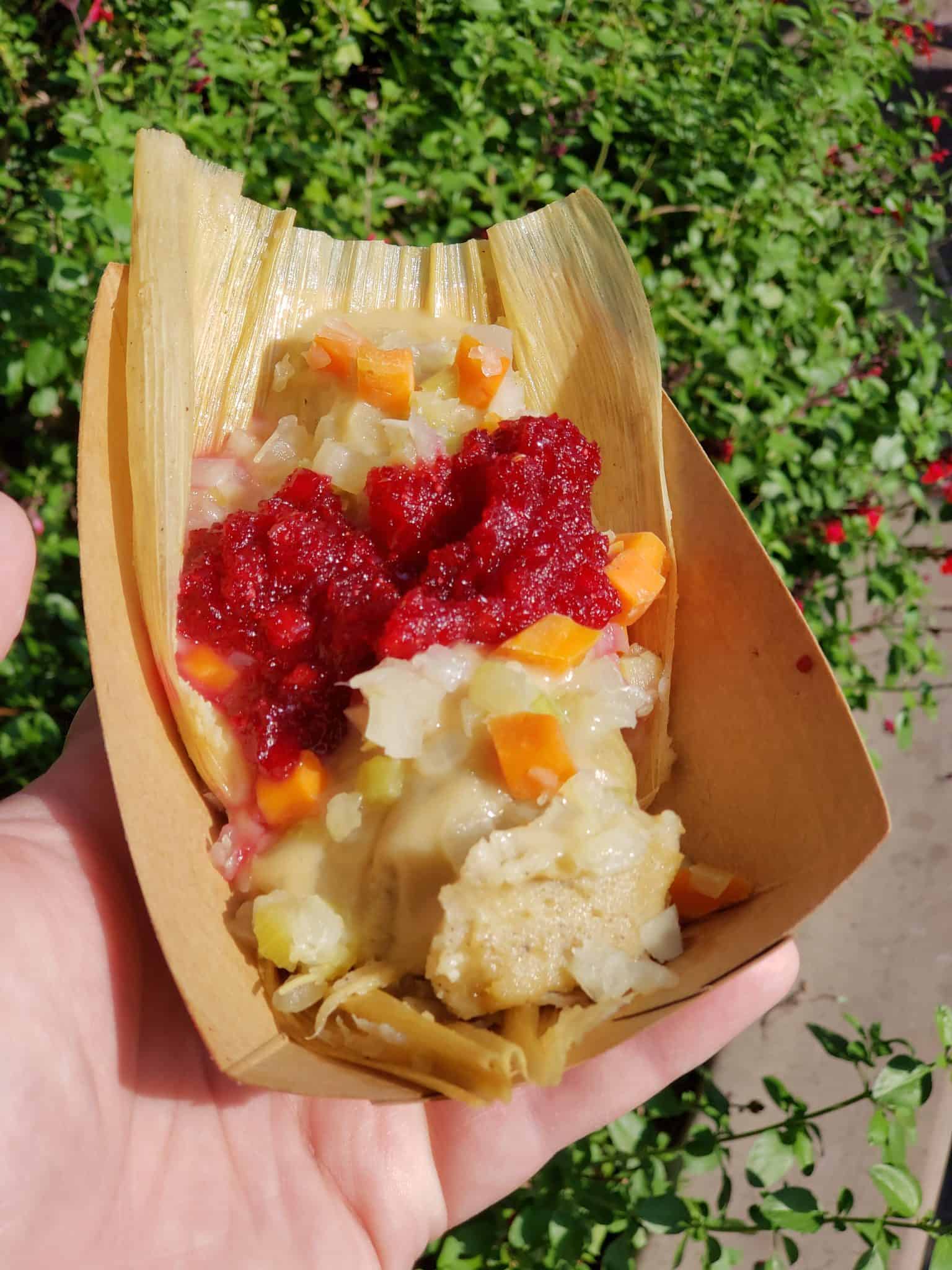 Turkey & Stuffing Tamale with Cranberry Relish ($7.75)