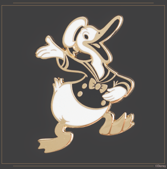 The pins range from early milestones like The Skeleton Dance and more recent animation creations such as Up. Spanning 90 years of history, these glittering gold-tone finish pins were designed by Disney artist Ricky De Los Angeles exclusively for D23 Gold Members in 2019.