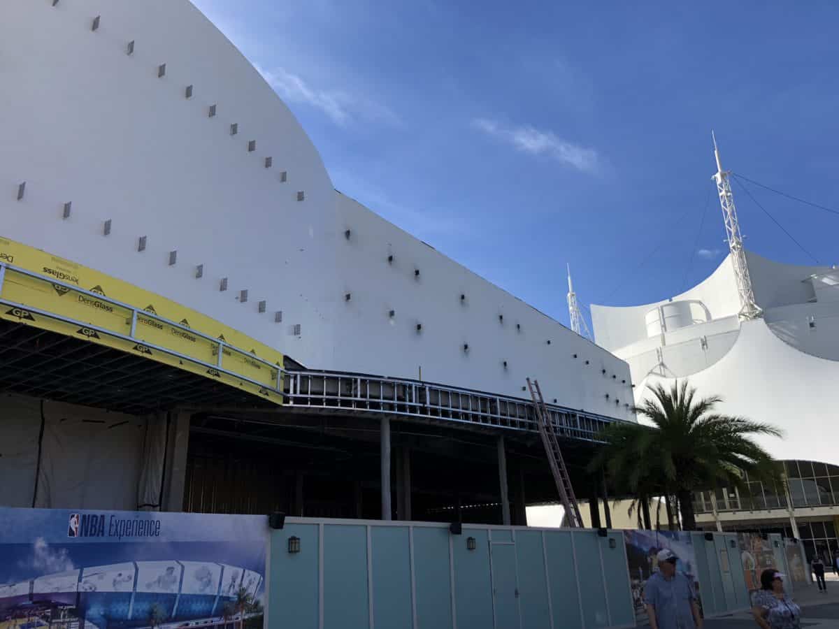 The NBA Experience is slowly but surely coming into being. The shell of the building seems almost complete, though the inside is still just steel beams.