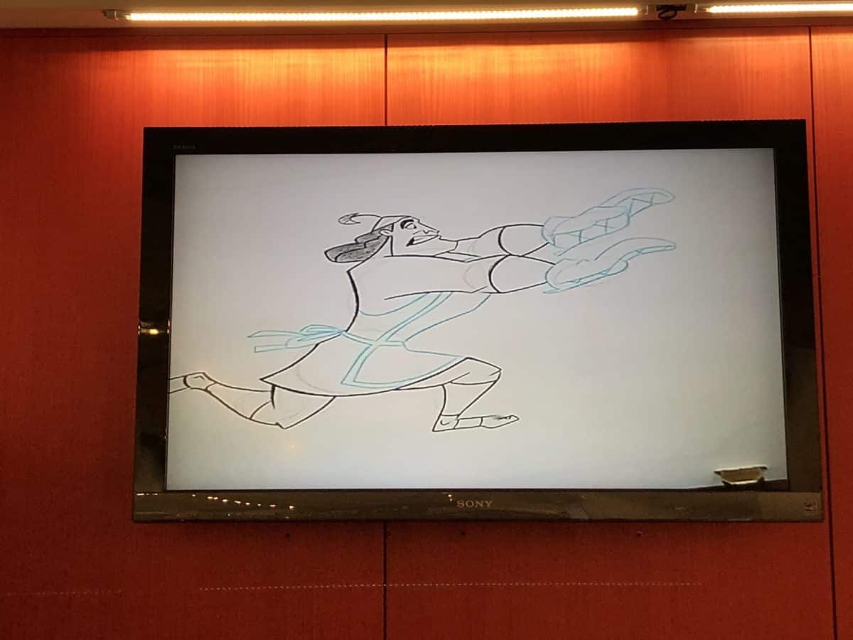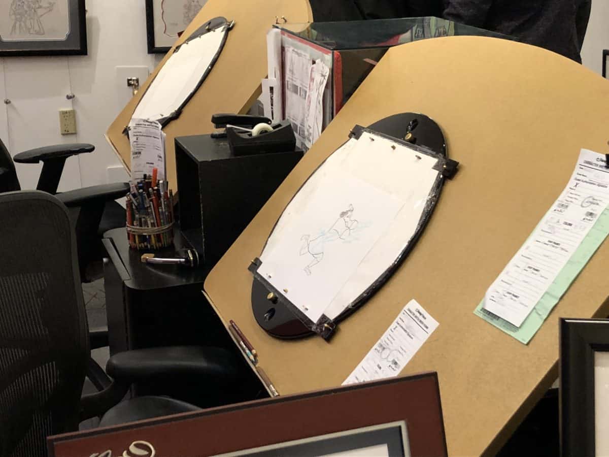The Disney artist was on break, but they were in the middle of this fine drawing of Kronk running back into the kitchen for his spinach puffs.