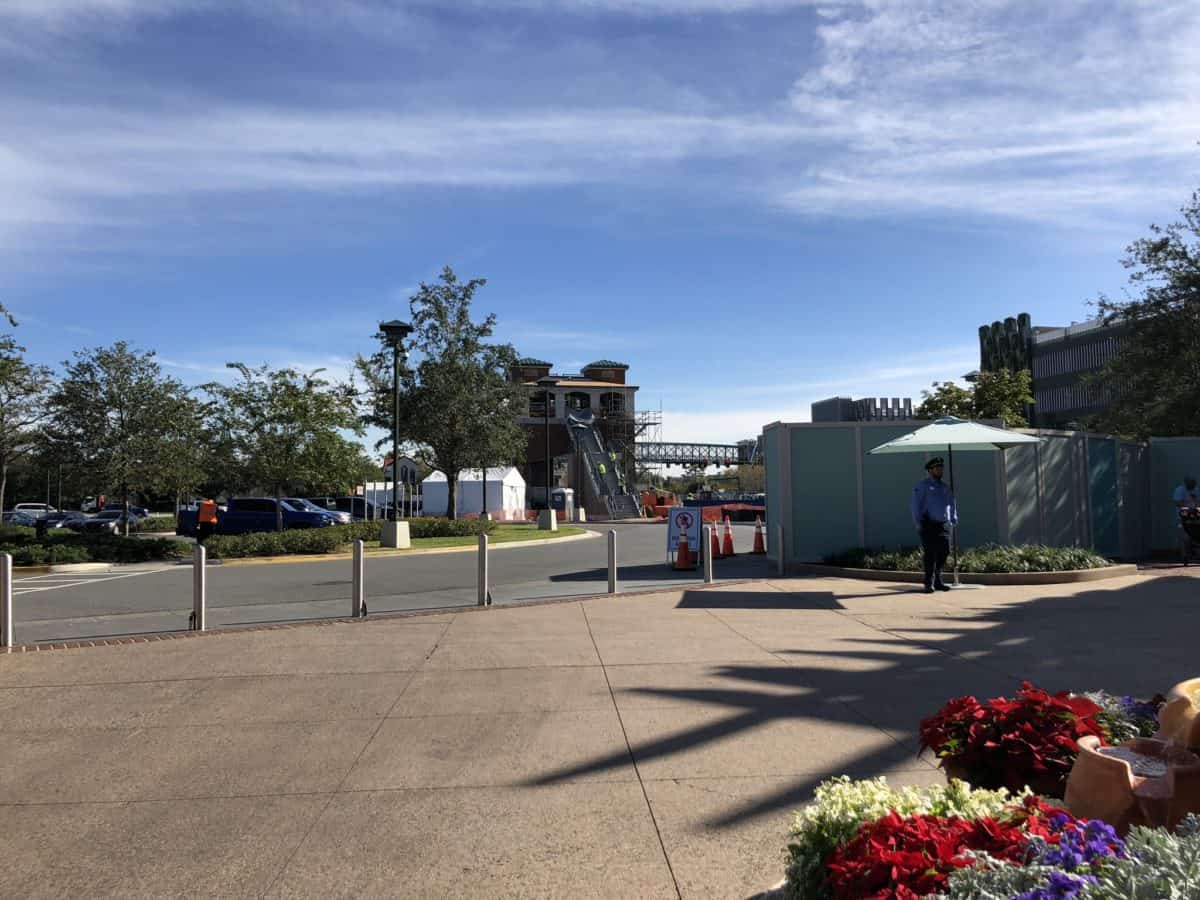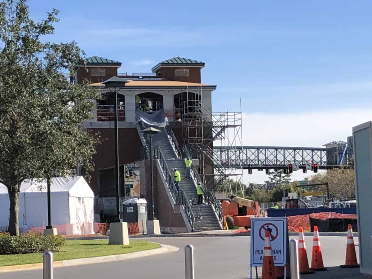 Here are just a few updates on the remaining construction projects around Disney Springs. The pedestrian bridge to the new parking garage is coming along nicely. They are finishing up the brick work.