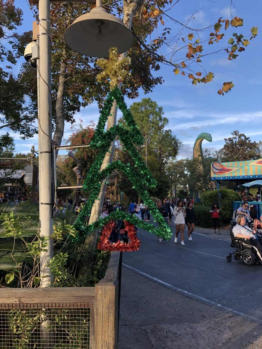 The excellent and creative decorations remain up around the park, this street lamp leading up to Dinoland is one of my favorites.