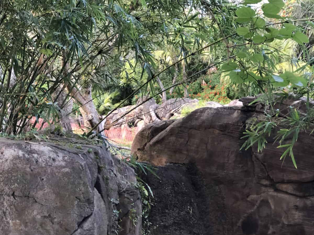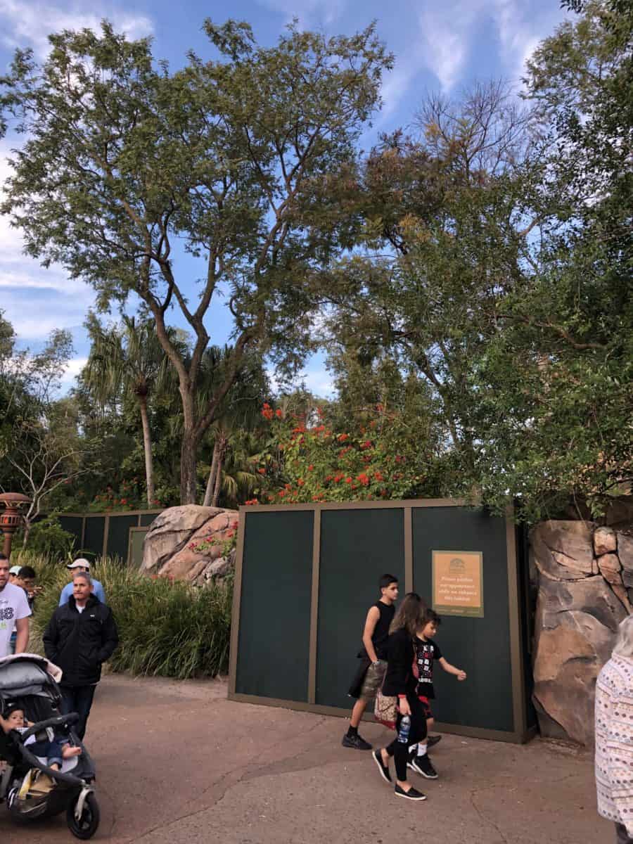 The walls run along most of the left side of Discovery Island, making a pretty ugly first impression for guests just entering the park.