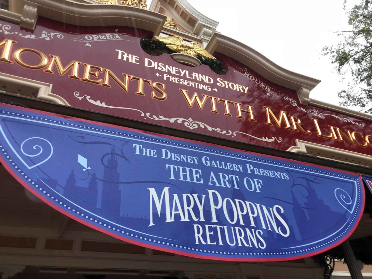 To celebrate the release of “Mary Poppins Returns” on December 19, 2018, a new exhibit has opened at Disneyland. The Art of Mary Poppins Returns features costumes, props, artwork, and clips from the upcoming film. The exhibit is to the right upon entering the Great Moments with Mr. Lincoln lobby on Main Street, USA.