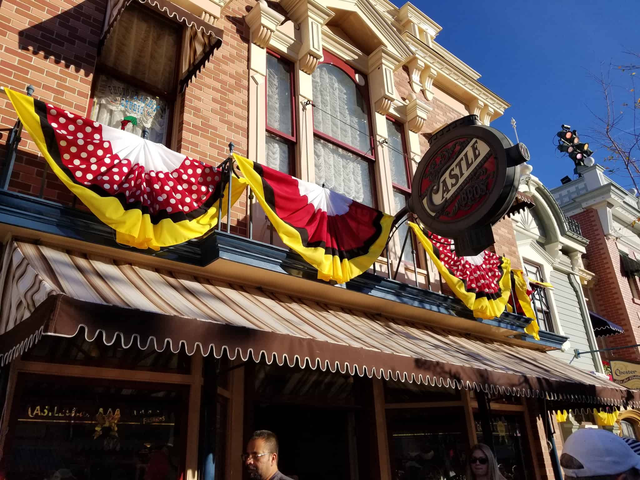 Slowly, and still understated, on might say, decorations are surfacing. Though this is how Pixar Fest began, before it caught steam. Banners and bunting abound, in classic Mickey and Minnie Mouse coloration. Yes, the original colors were black and white (black and grey for you purists). The now traditional red, black, white, and yellow make for a slightly more festive atmosphere.