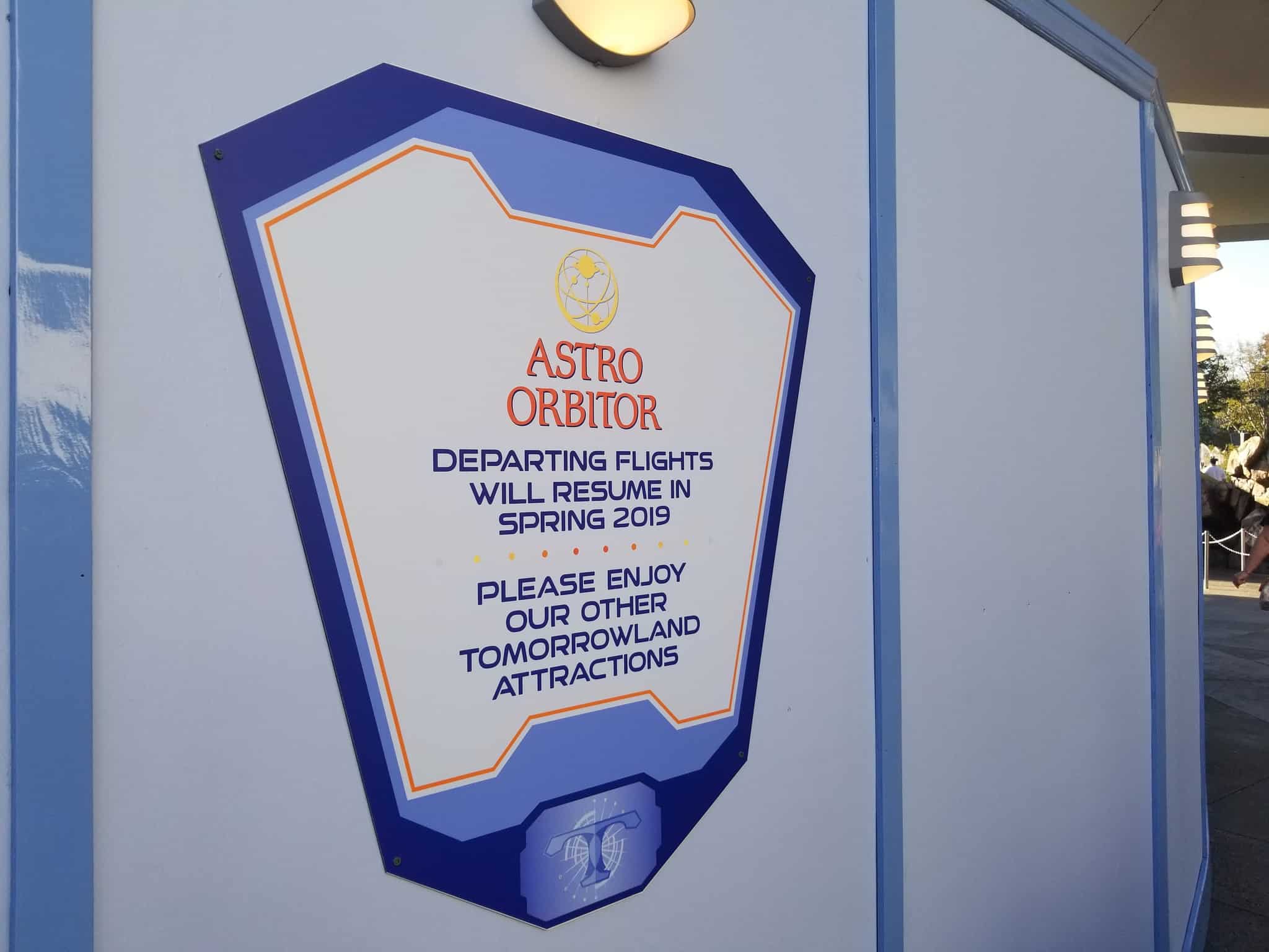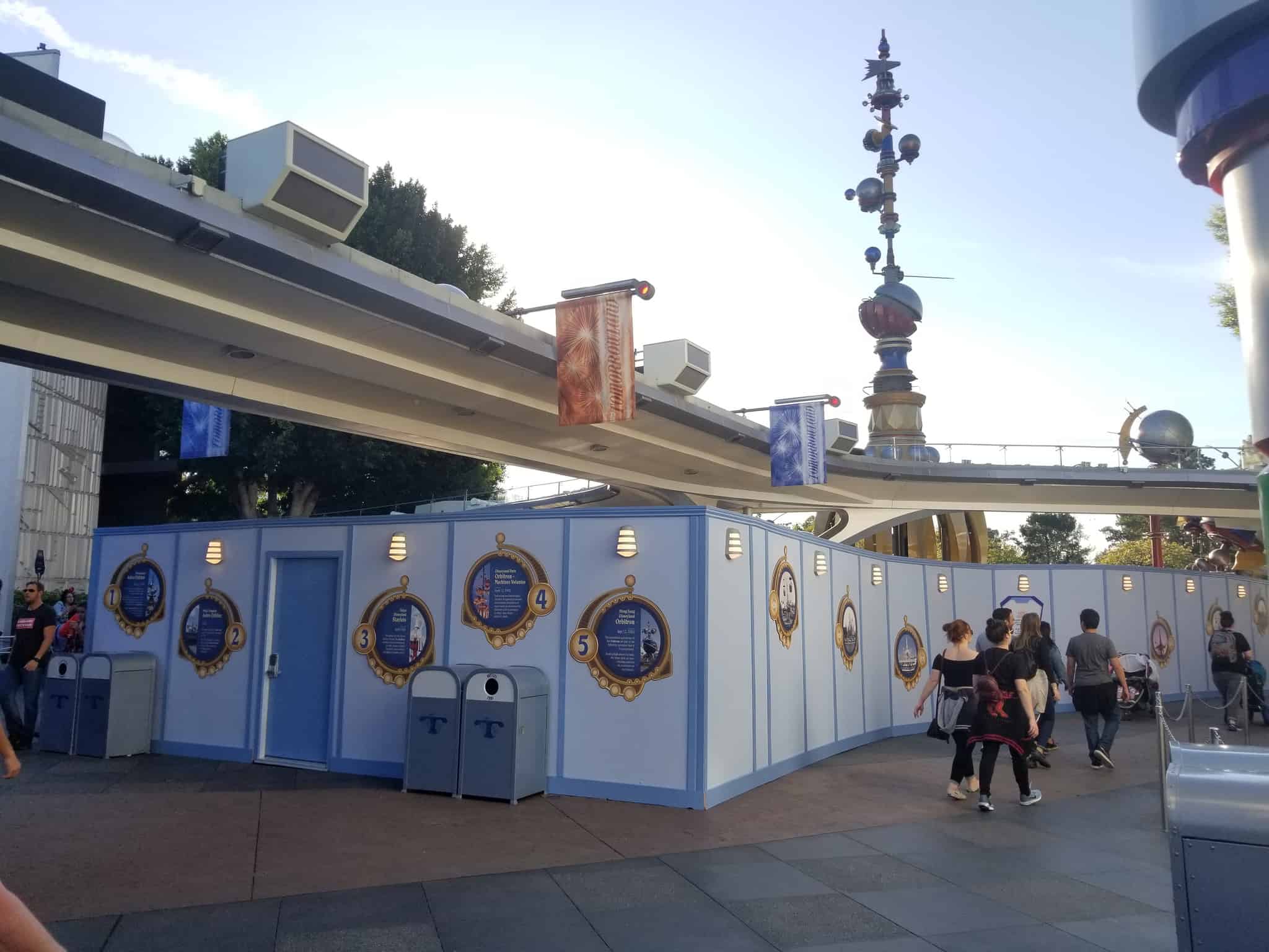 A few attractions are down for a spell. Astro Orbiter central among them. On the walls is a history of Disney’s spinning Tomorrowland attractions.